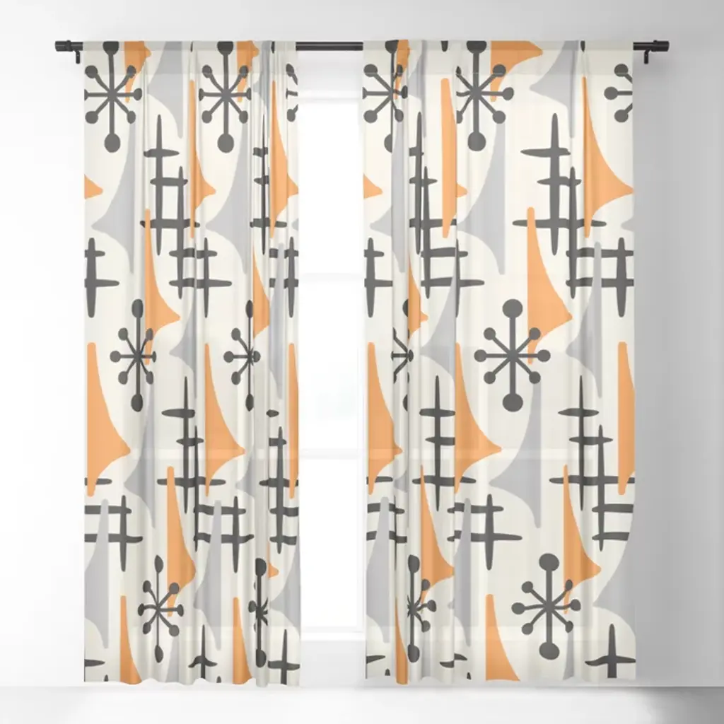 Retro 1950s Style Mid Century Modern Atomic Wing Pattern 834 Googie Orange And Gray Curtain