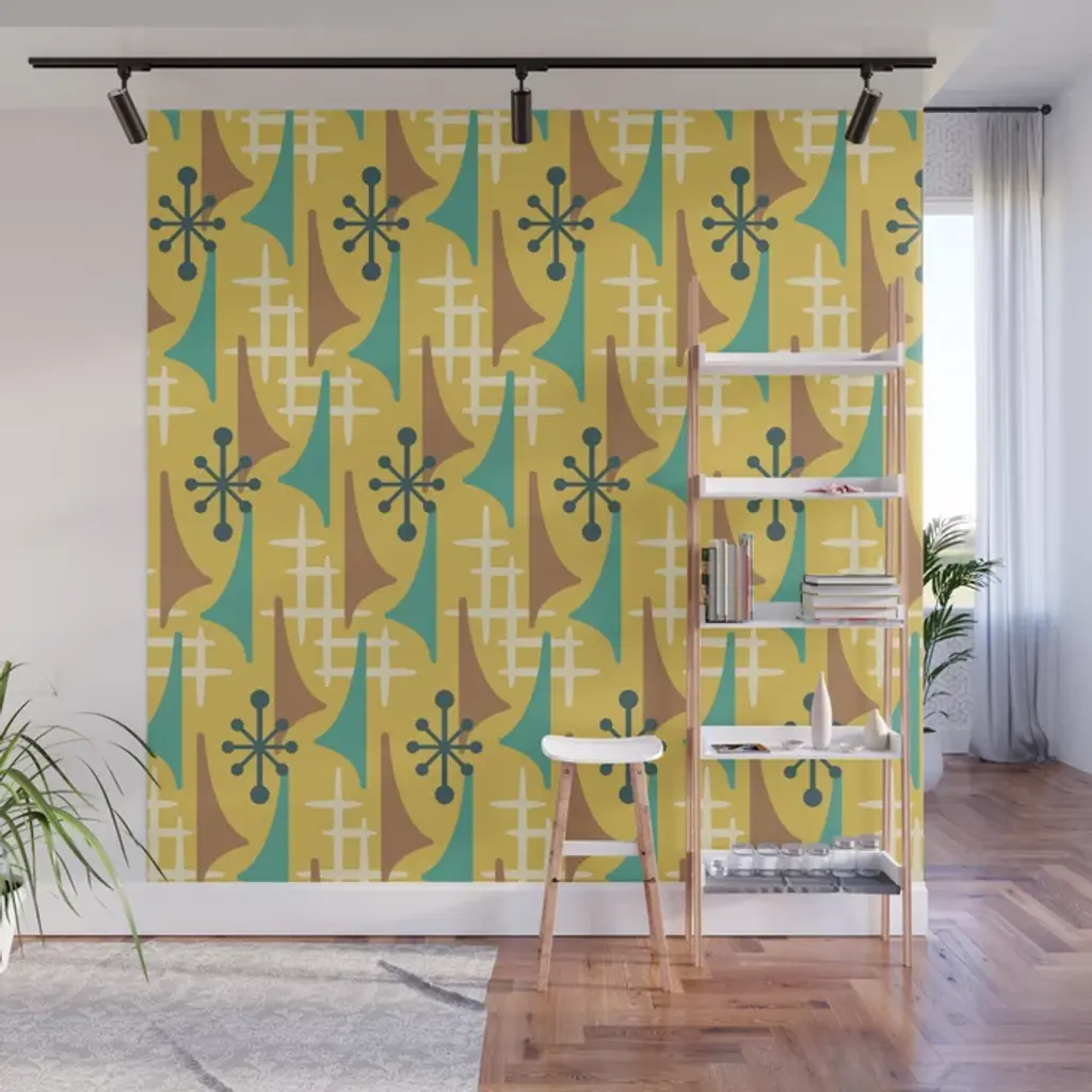 Retro 1950s Style Mid Century Modern Atomic Wing Pattern 834 Googie Orange And Gray Curtain