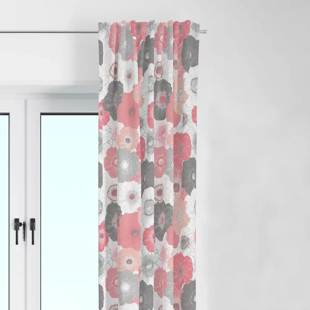 Retro 60s 70s Aesthetic Floral Pattern In Bright Candy Pink Curtain