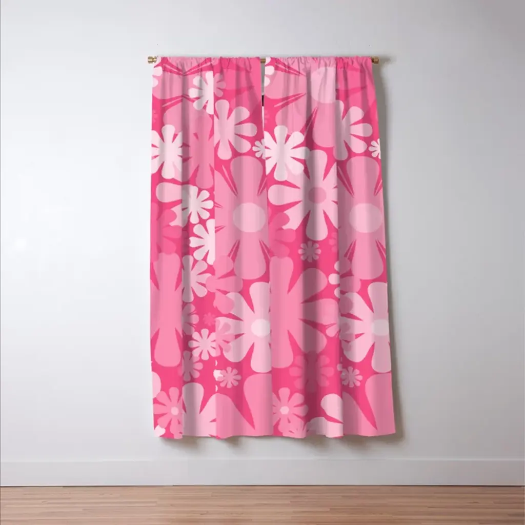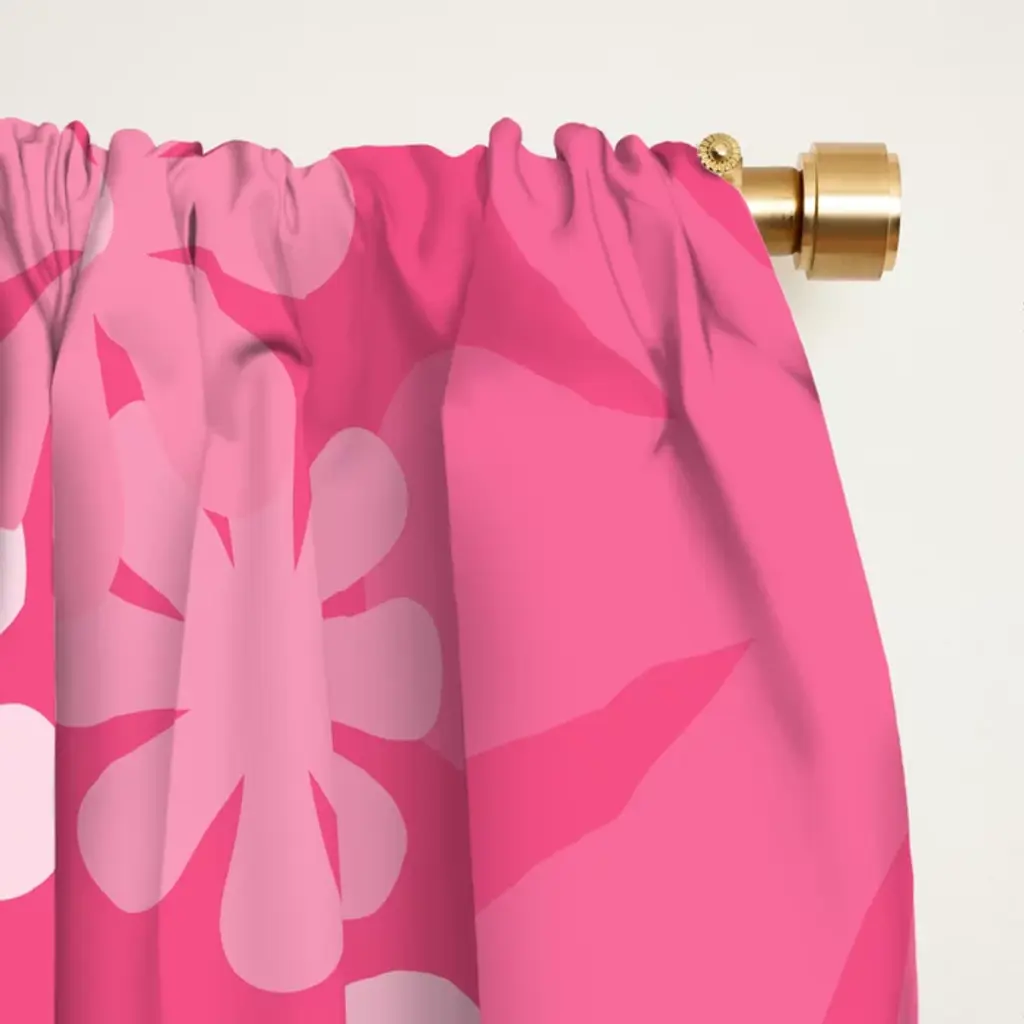 Retro 60s 70s Aesthetic Floral Pattern In Bright Candy Pink Curtain