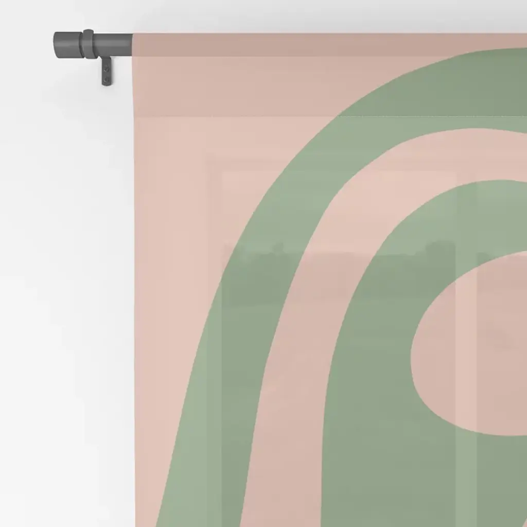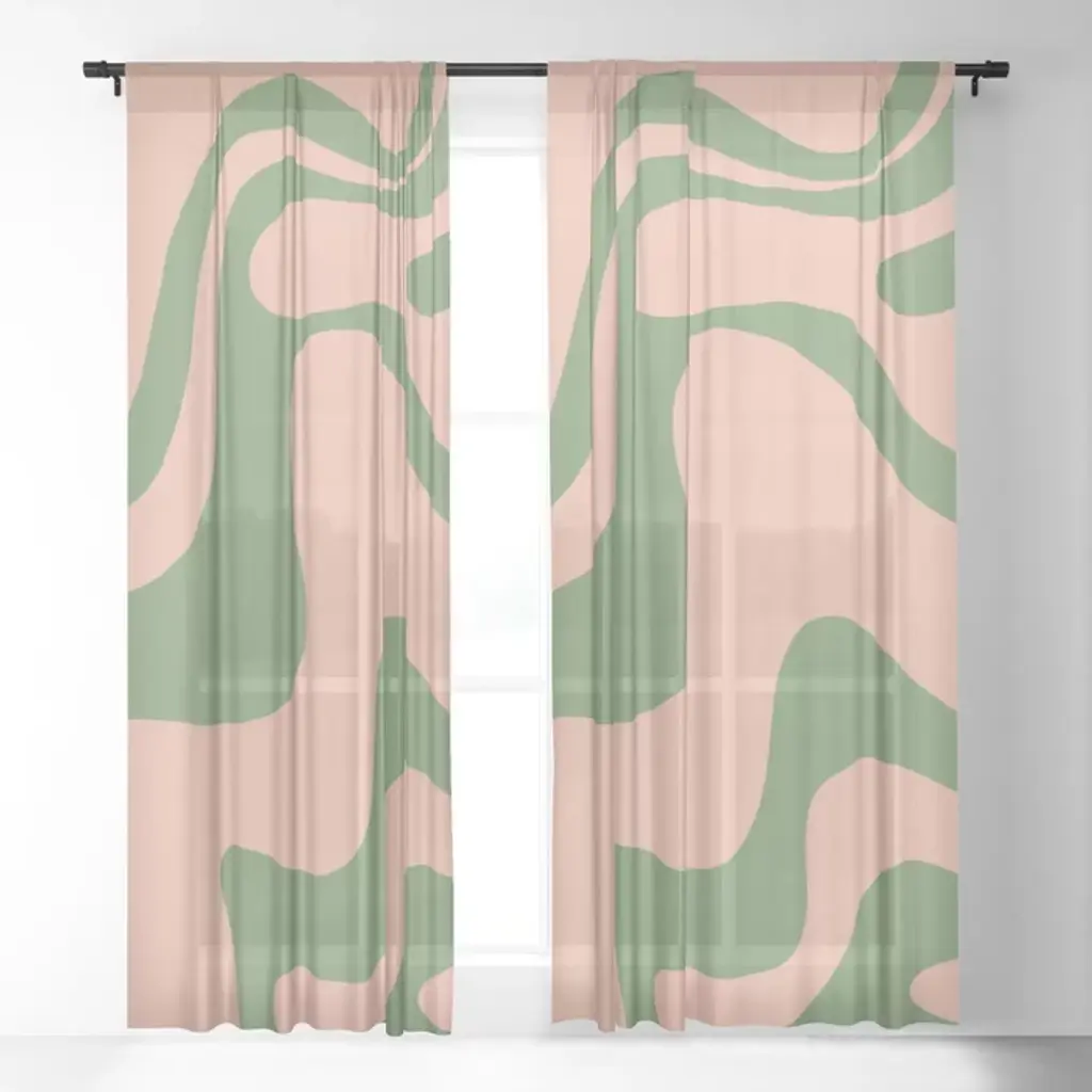 Retro Liquid Swirl Contemporary Abstract Pattern 2 In Vintage Green And Blush Pink Curtain