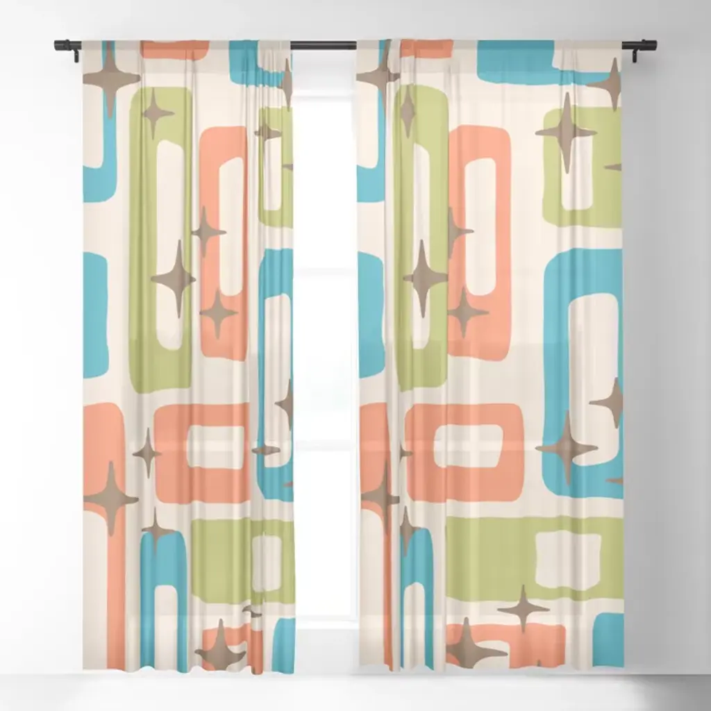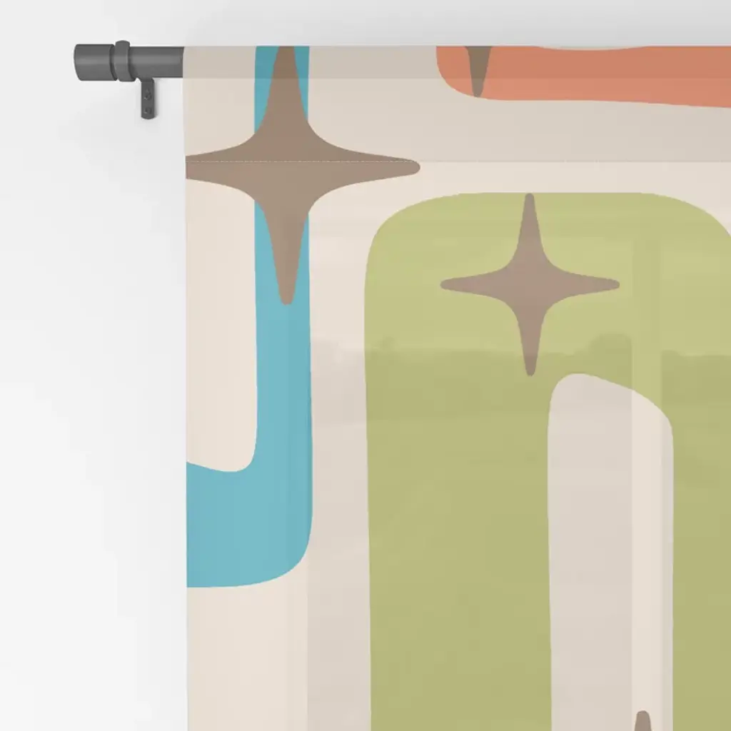 Retro Mid Century Modern Abstract Pattern 921 Googie Orange Chartreuse Turquoise Curtain