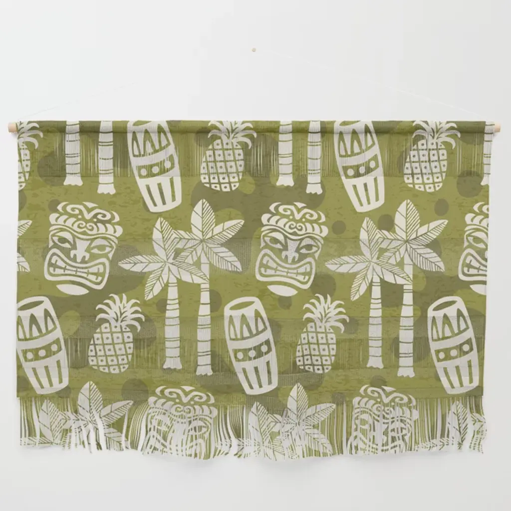 Retro Mid Century Modern Tiki Pattern 540 Red Green Orange And Beige Curtain