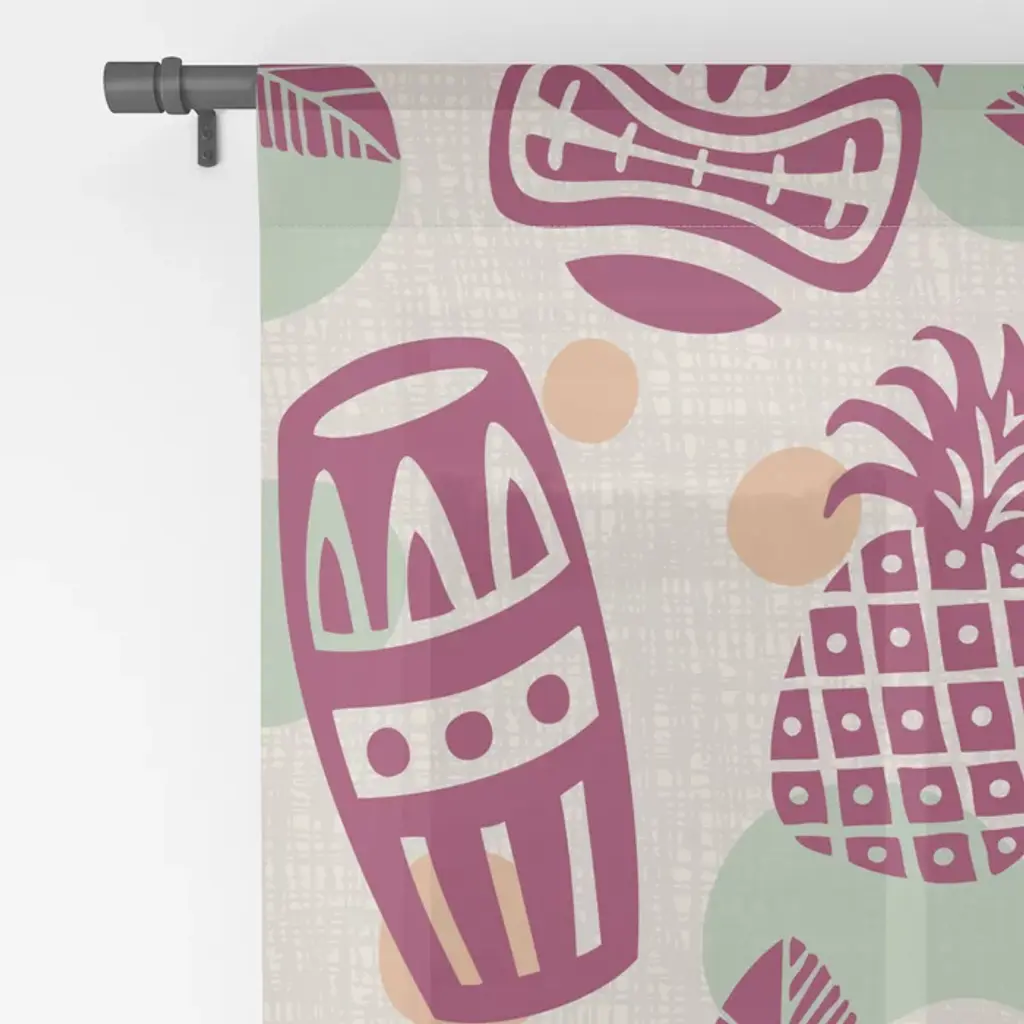 Retro Mid Century Modern Tiki Pattern 540 Red Green Orange And Beige Curtain