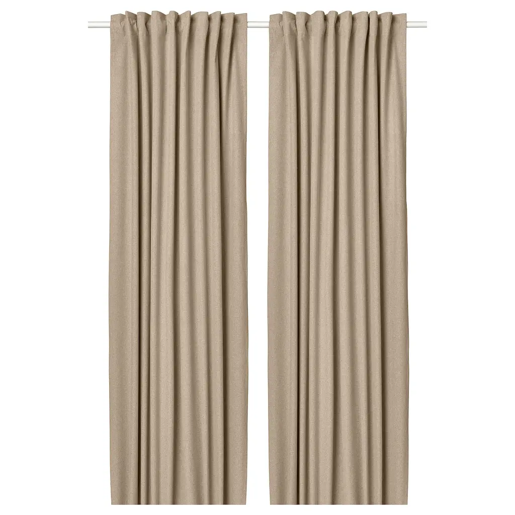 ROSENMANDEL Room darkening curtains, 1 pair - yellow-beige 53x98 ". The thick curtains darken the room and provide privacy by preventing people outside from seeing into the room. Using gliders and hooks usually creates a more formal and dressed-up feel, where hardware is not visible.