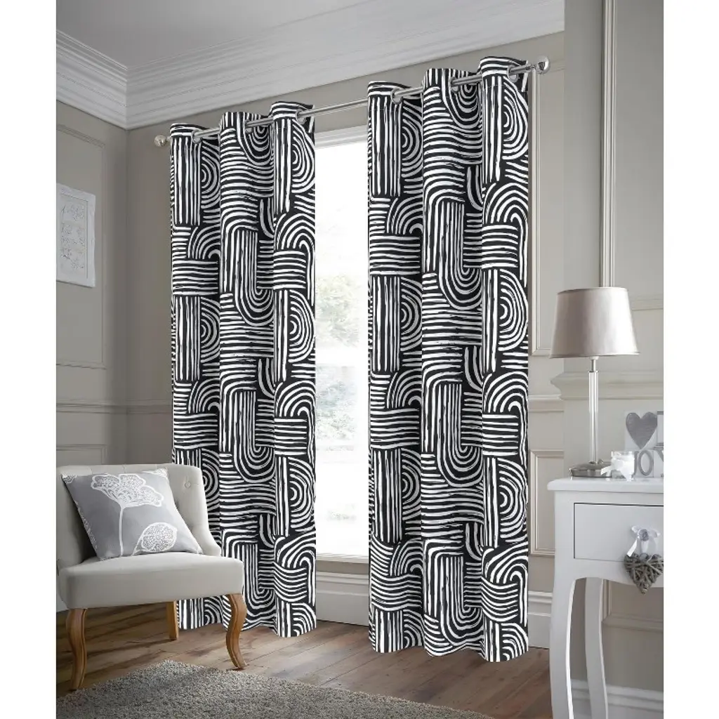 Rt Designer Collection Ashton Prnt 2 Pack Blackout Grommet Luxurious Modern Design Curtain Panel 36" X 84" Black