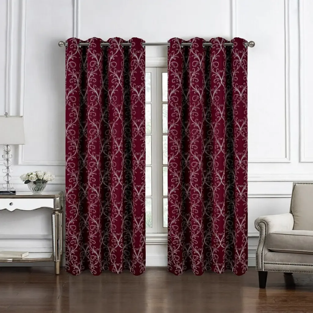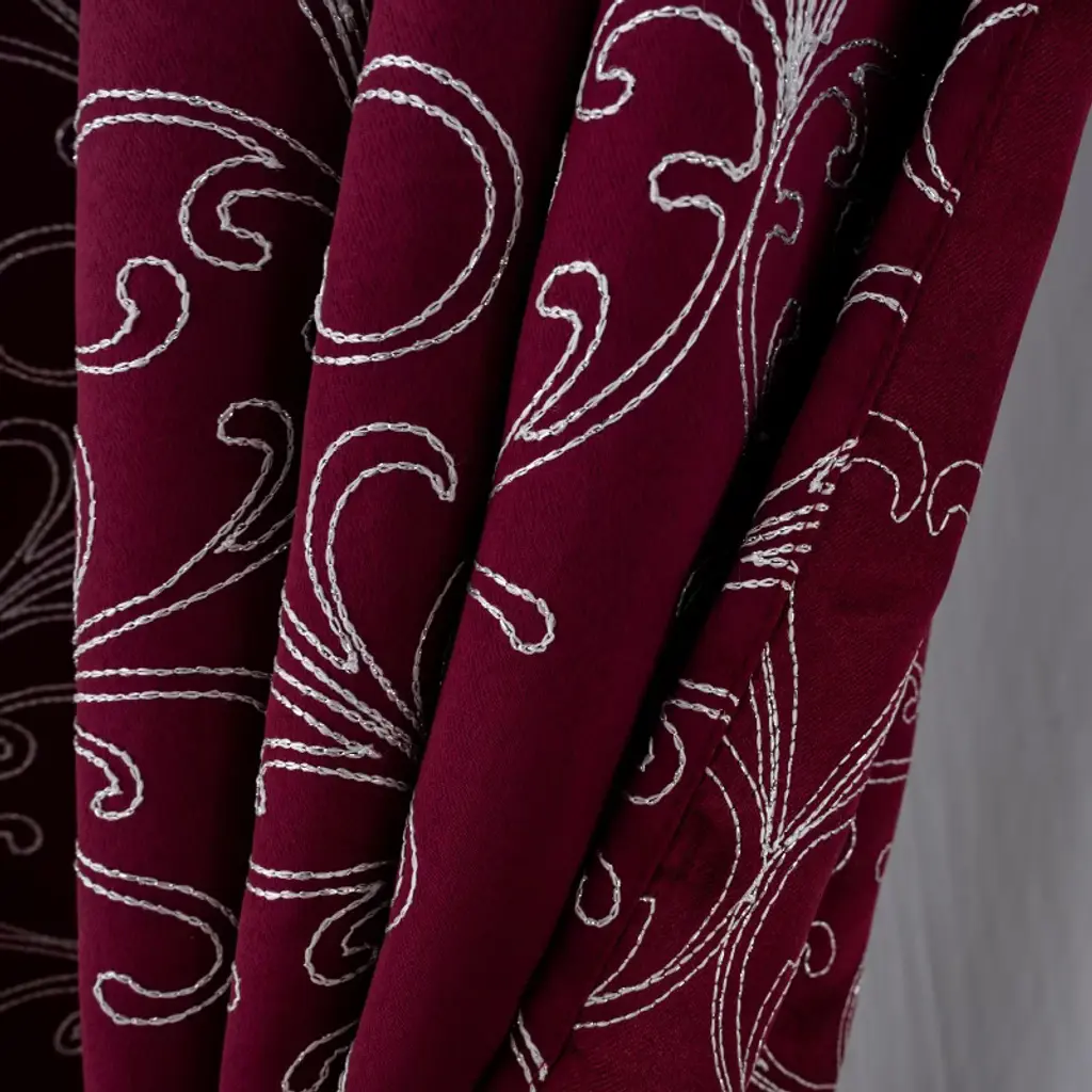 Rt Designer Collection Kimber Embroidered Blackout Luxurious Decorative Grommet Curtain Panel 54" X 84" Burgundy