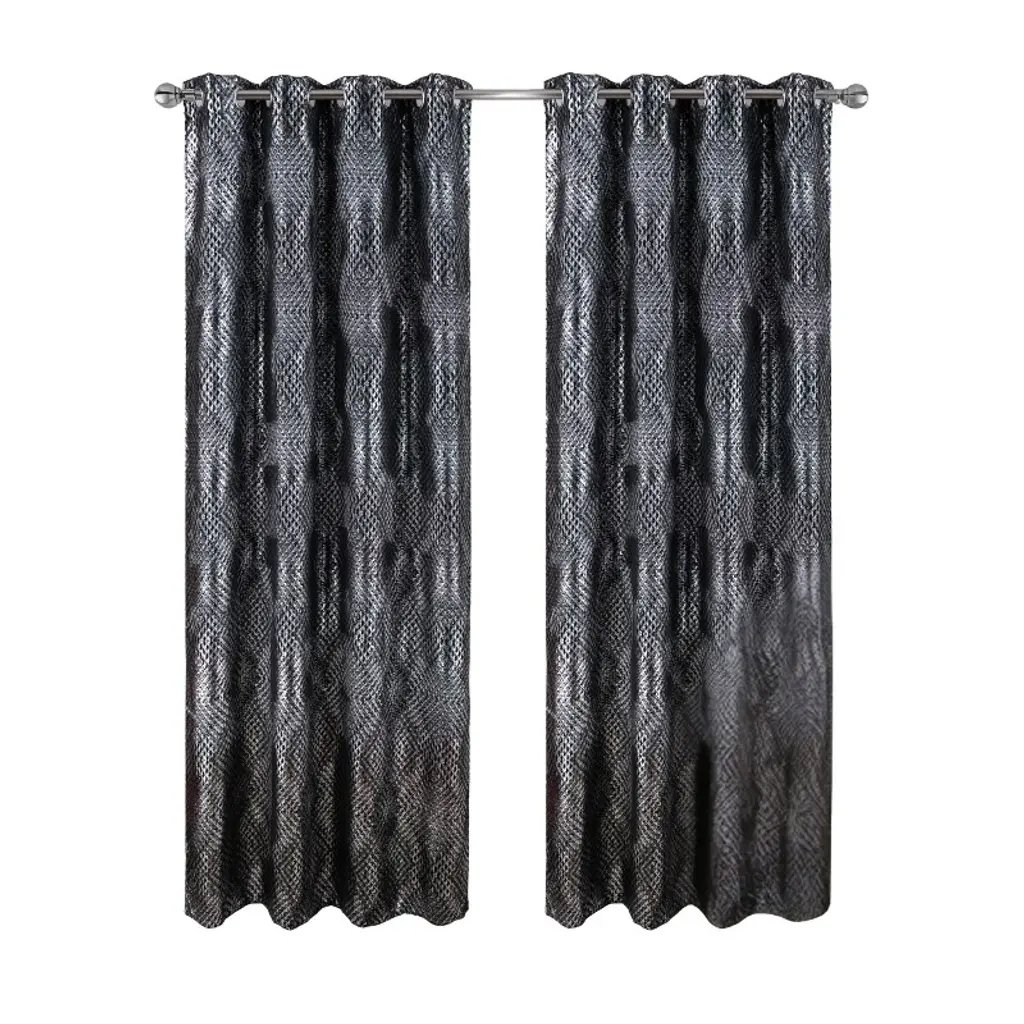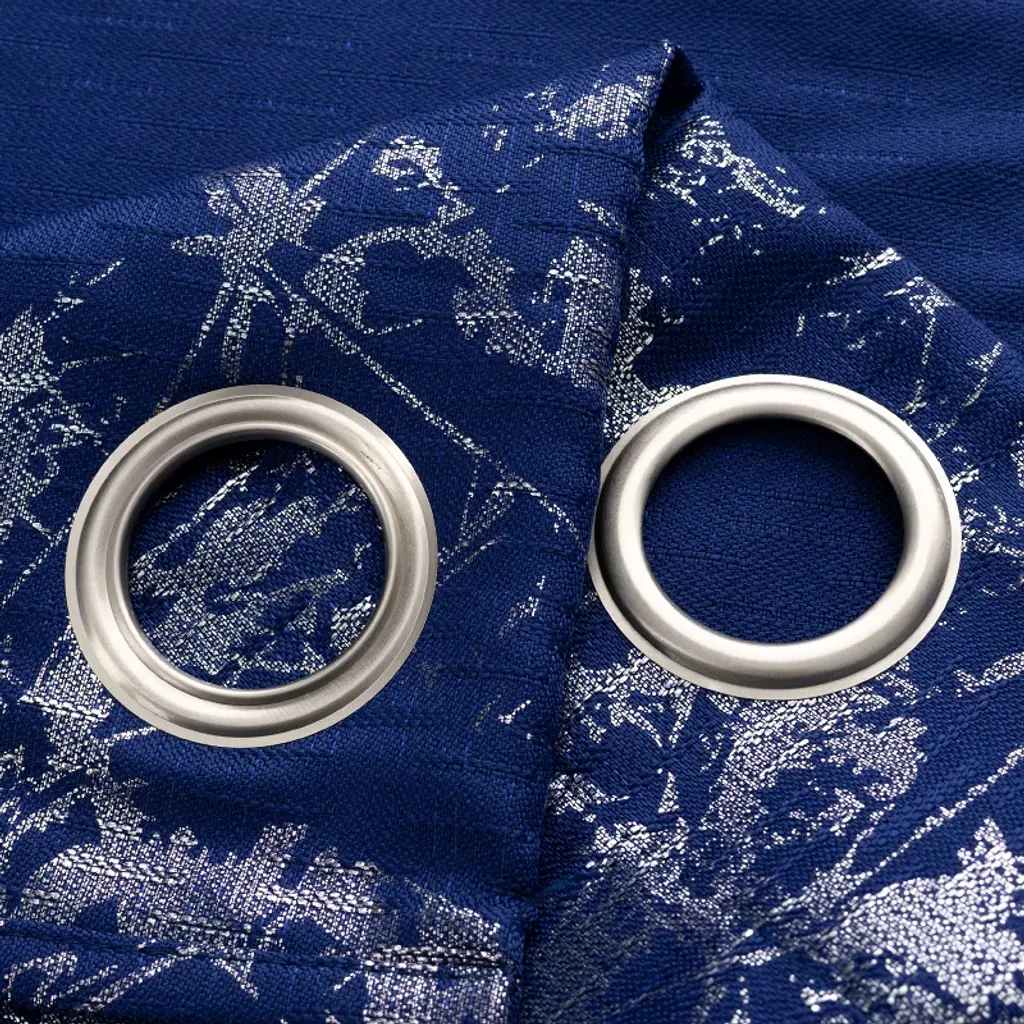 Elevate your home décor with the Brighton Foil Jacquard Grommet Panel in Navy, a stunning single curtain designed to bring modern elegance and practicality to your living spaces. Featuring a textured jacquard base enhanced with an abstract floral foil print, this panel captures the light beautifully, creating subtle shimmer and depth in any room. Each panel measures 52 inches wide by 84 inches long, providing generous coverage whether used alone or paired with another for a fuller look. The high-quality polyester fabric offers a balance of durability and softness, making it ideal for everyday use while maintaining a stylish finish. A grommet header ensures smooth gliding on any standard curtain rod, allowing for effortless installation and a clean, tailored appearance. Perfect for bedrooms, living rooms, dining areas, or offices, this panel filters light softly while maintaining privacy, creating an inviting atmosphere.