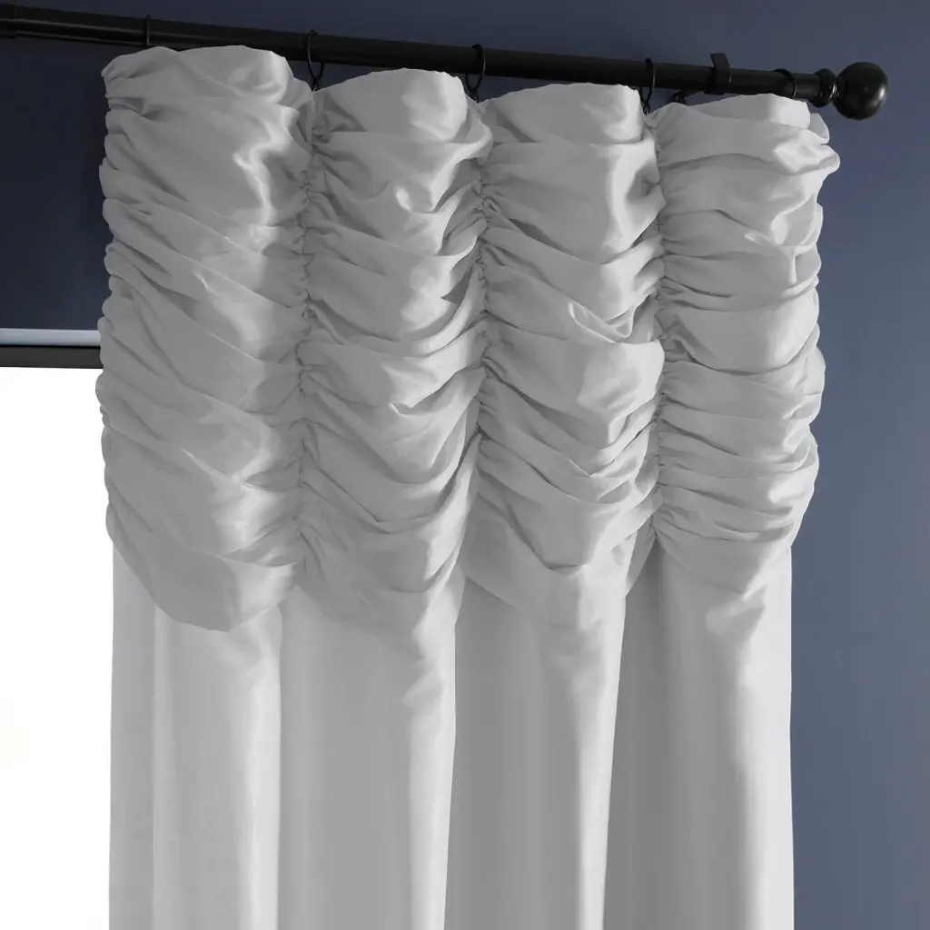 Ruched Vintage Faux Dupioni Silk Curtain Single Panel, Ice, 50" X 96"