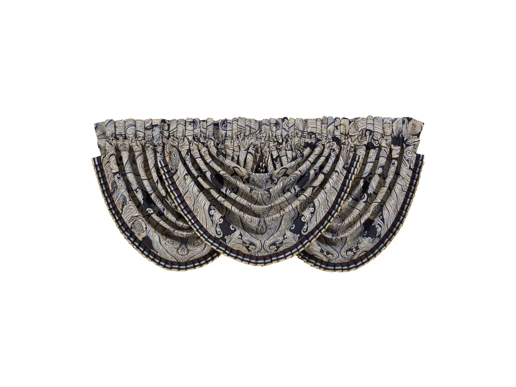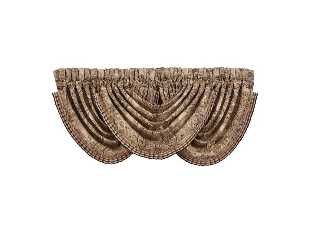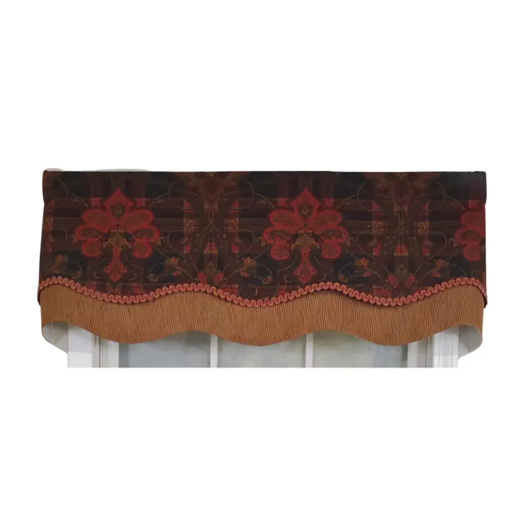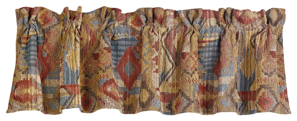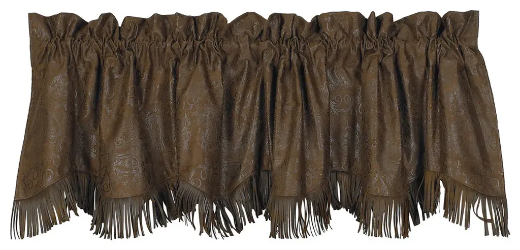 The HiEnd Accents San Angelo collection mixes paisley print with fun pops of leopard chenille, red faux leather, and teal velvet for a designer collection with western flair. This valance features a rich paisley and red faux leather accents with a rod pocket for stylish hanging. Single panel, measures 84 by 18 inches. Dry clean recommended.
