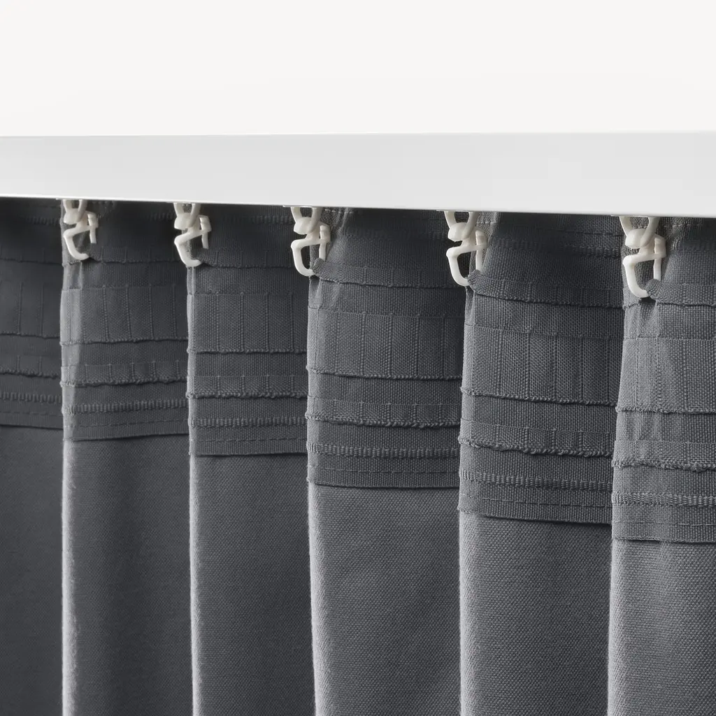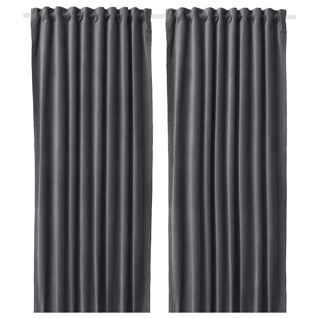 SANELA Room darkening curtains, 1 pair - dark gray 55x98 ". The thick curtains darken the room and provide privacy by preventing people outside from seeing into the room. Effective at keeping out both drafts in the winter and heat in the summer. Curtains, 1 pair included