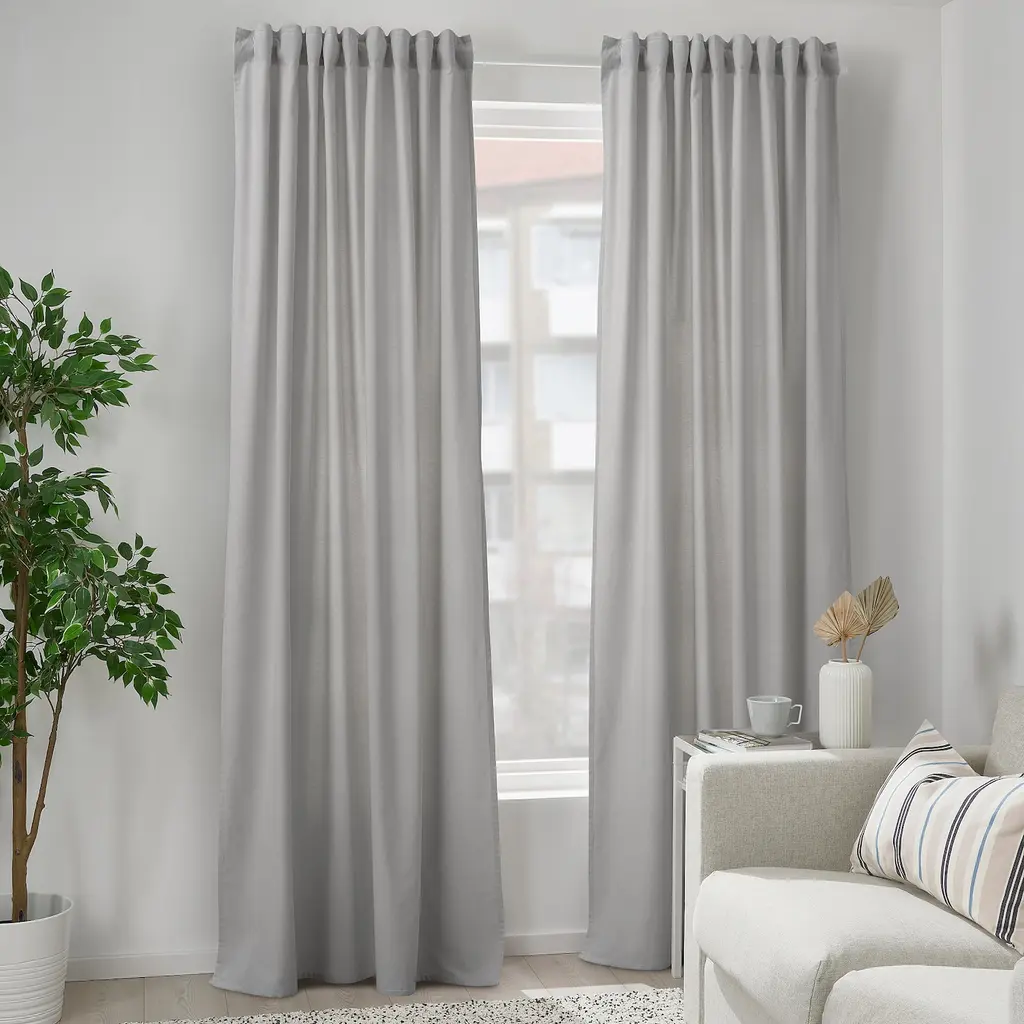 SANELA Room darkening curtains, 1 pair - light gray 55x98 ". The thick curtains darken the room and provide privacy by preventing people outside from seeing into the room. Effective at keeping out both drafts in the winter and heat in the summer. Curtains, 1 pair included