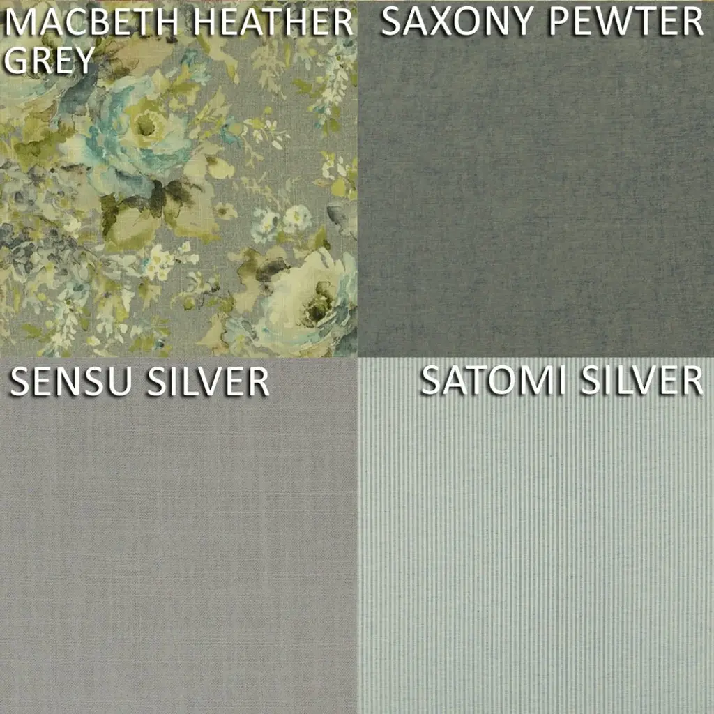 Your bedding, window treatments, and home accents are CUSTOM-MADE TO ORDER in our North Carolina sewing room.Satomi is a sophisticated sateen stripe in varying shades of grey and silver. The subtle sheen will add a touch of glamour to any space! Includes one double-layered Bradford valance with a choice of patterns for the back layer.Total Size is 52" wide x 17" long. Length is measured from the top of the rod pocket to the bottom edge. 3" rod pocket, 2" header. Valance is 100% Poly. The lining fabric is an ivory cotton/polyester blend. Dry cleaning is recommended.Coordinating patterns in the Collection: Macbeth Heather Grey, Saxony Pewter, Sensu Silver, Satomi Silver.Check our other listings for matching and coordinating bed, bath, window and home decor items.