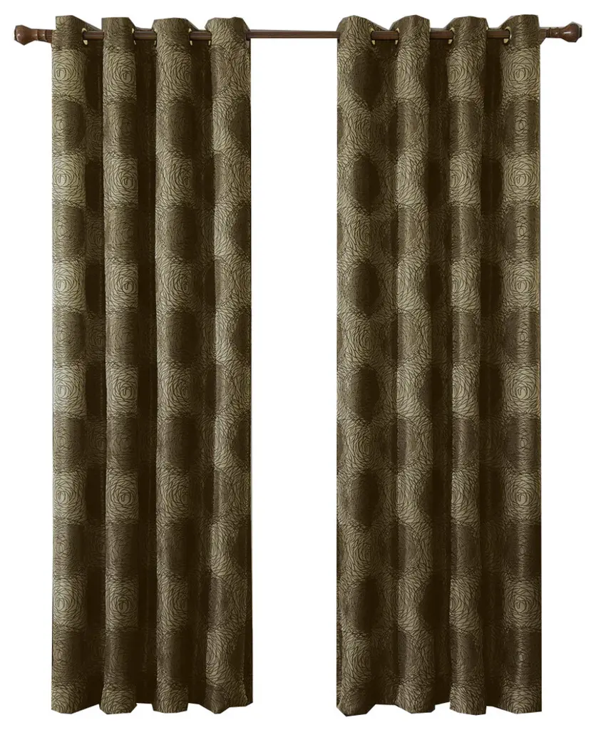 Decorate your windows with this vivid Savanna Inspired Jacquard Curtain Panels With Top Grommets. With a geometric pattern available in several tones, This jacquard panel is perfect for adding a little panache and privacy to a room and Perks up any living area.- 100% Polyester- Machine wash- Royal Tradition Brand- Jacquard Textured 8 Grommets Panels- Out side diameter of each Eyelet is 2.3'''' and inside diameter is 1.6''''- Luxury 3" Bottom Hem and 1" Sides Hem- Sold In Pairs (each package contains two panels)Available Sizes Include:- 104 x 63" Pair. (52 x 63" each) - 104 x 84" Pair. (52 x 84" each)- 104 x 96" Pair. (52 x 96" each- 104 x 108" Pair. (52 x 108" each)