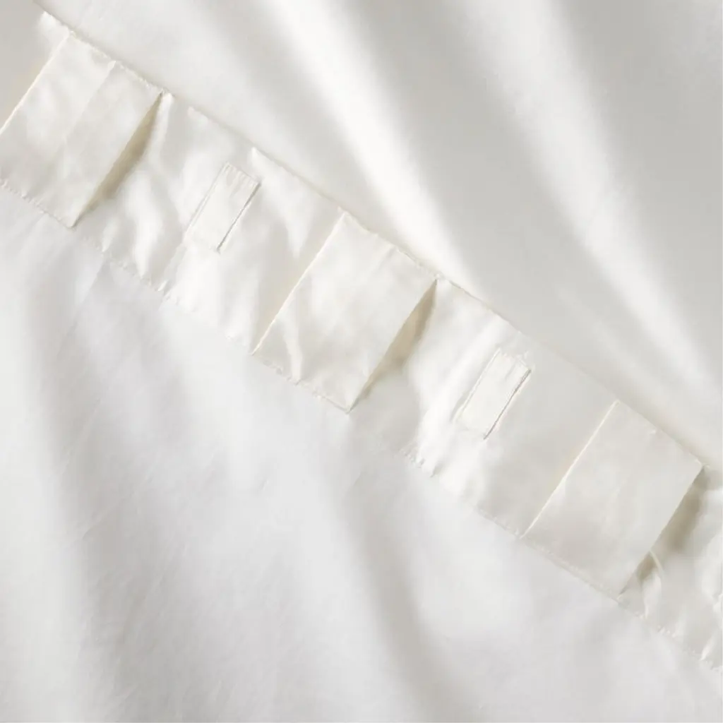 Bright white dupioni silk turns windows into a focal point with its luxurious sheen. Natural subtle texture adds depth and warmth to the panel so it never feels too shiny. Hangs beautifully with back tabs, rod pocket or drapery hooks. CB2 exclusive.