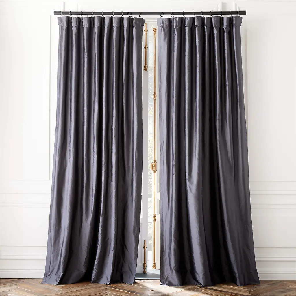 Silk dupioni turns windows into a focal point with its elegant sheen. Natural subtle texture adds depth and warmth to the drapery so it never feels too shiny. Hangs beautifully from back tabs, rod pocket or drapery hooks. CB2 exclusive.