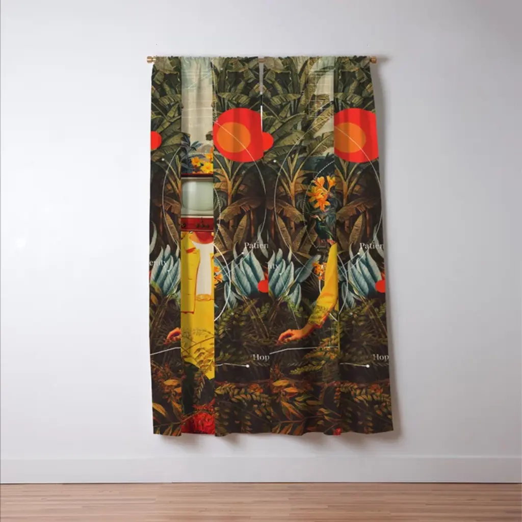 Blackout curtains are crafted with 100% woven polyester with a linen-like texture.Light-Filtering curtains are crafted with 100% mid-weight polyester.Sheer curtains are crafted with 100% lightweight polyester.Single sided print with white on reverse.Available in single or double panel options (double panels feature the same design on both).4" bottom pocket for easy hanging on any curtain rod (please note: artwork will appear upside down on non-patterned designs).Machine washable for easy care.Please note: Color variations may occur between on-site previews, your screen, and the printed fabric.Blackout, Light-Filtering, and Sheer Curtains are easy to care for:Machine wash cold.Use gentle cycle.Tumble dry low.SHIPPING: Items are made to order and typically ship within 3-4 business days. Click here for more information about delivery options.RETURNS: Return requests can be made within 30 days of your item(s) delivery. Click here for more information on returns.