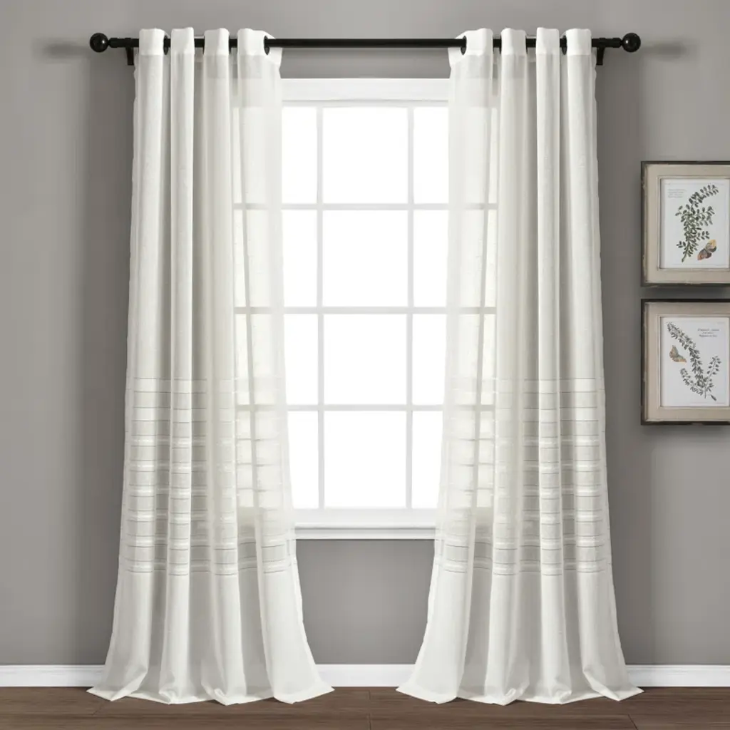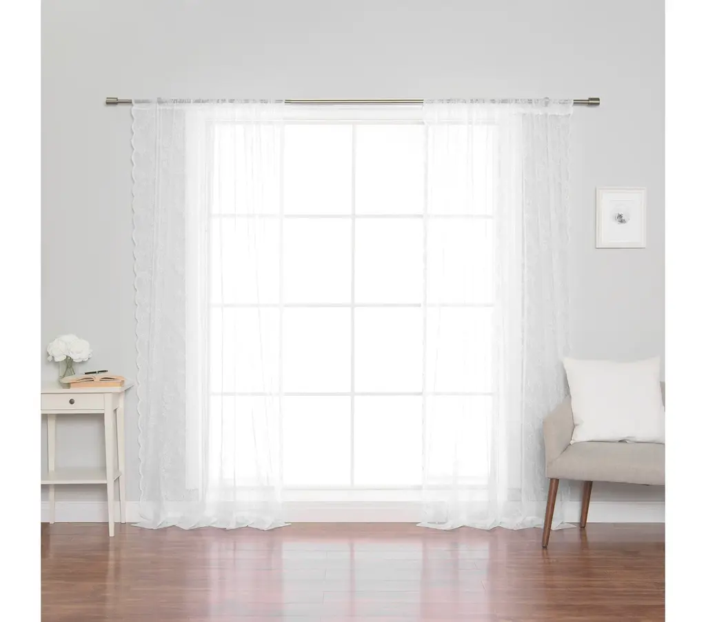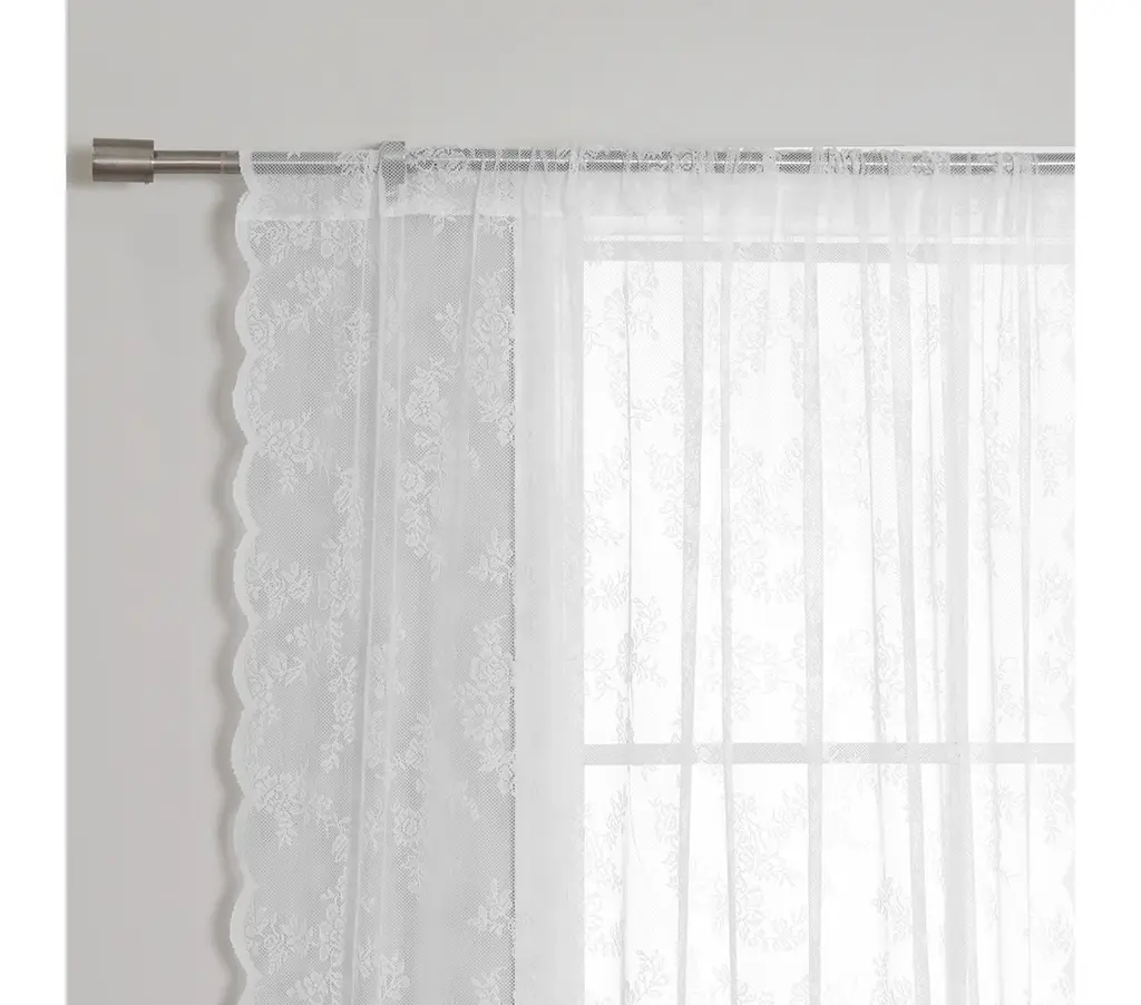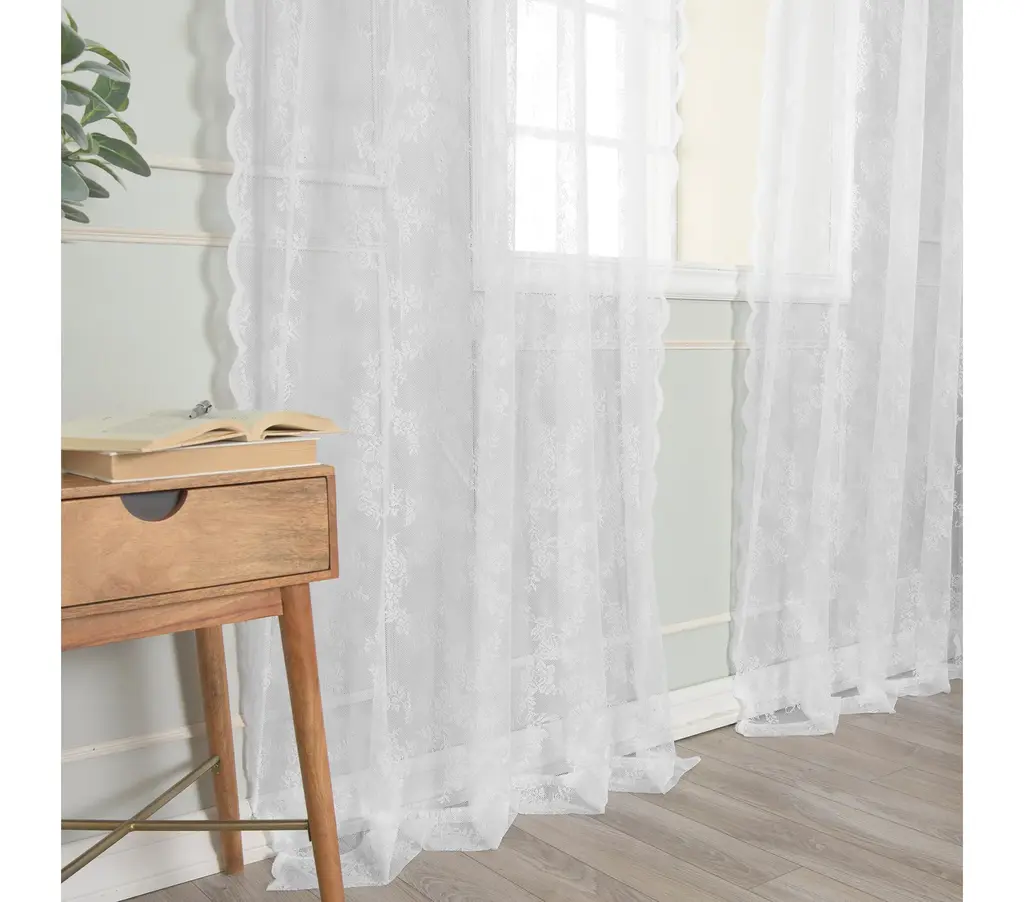So fresh and elegant, our Sheer Rose Embroidered Curtains will add a stunning focal point to your room. Featuring a beautiful floral pattern, these panels will flatter your space with a twist of vintage and country style vibe.Lightweight SheerRod pocket hanging styleMade of 100% polyesterTwo sizes available: 52" widex84" long and 52" widex96"Sold as sets of 2Machine washable