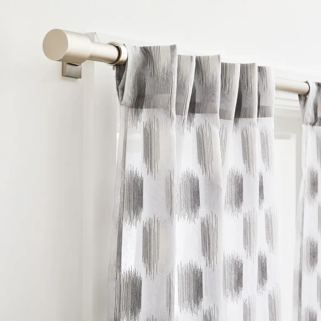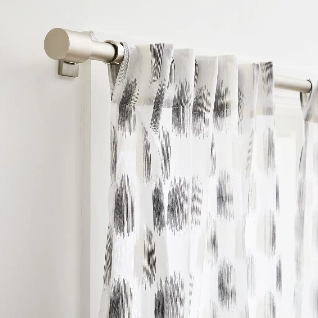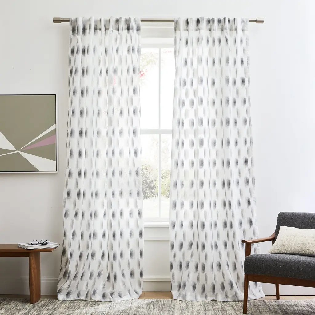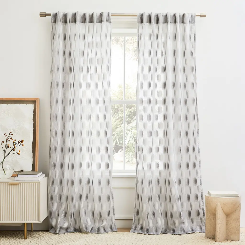 Soft shading creates a modern dot-like motif. Brings a luxe, lightweight look to windows. Light gently filters through but still offers privacy. Dual top treatment lets you choose how they hang.