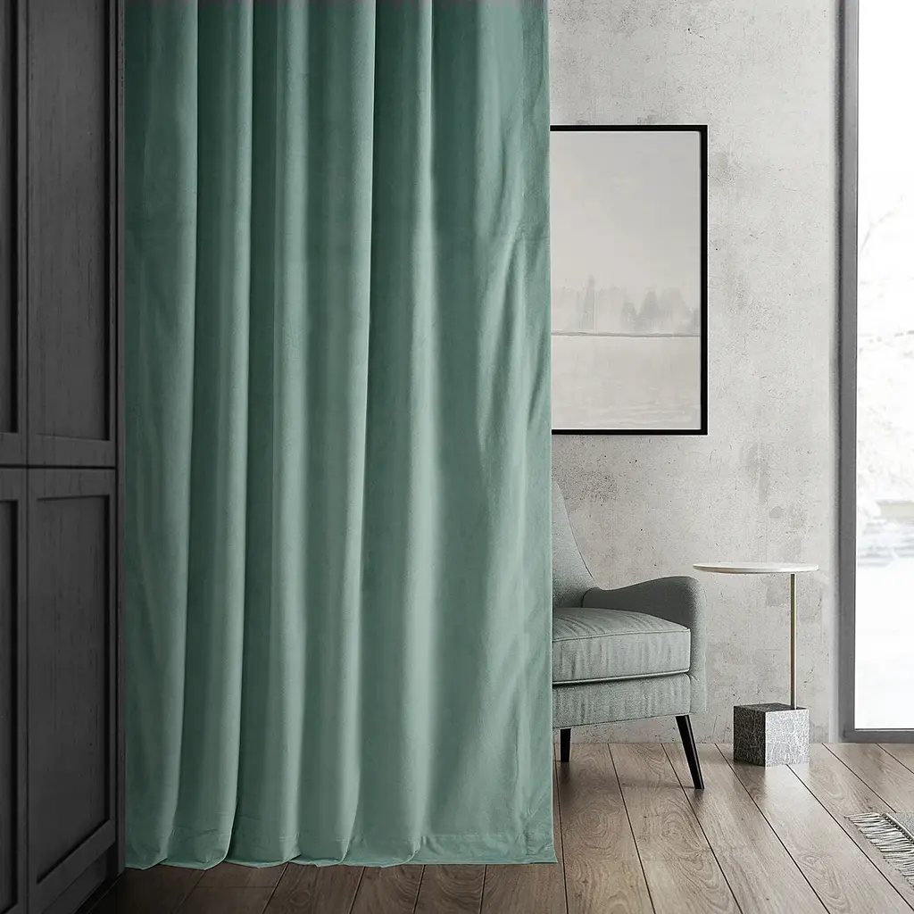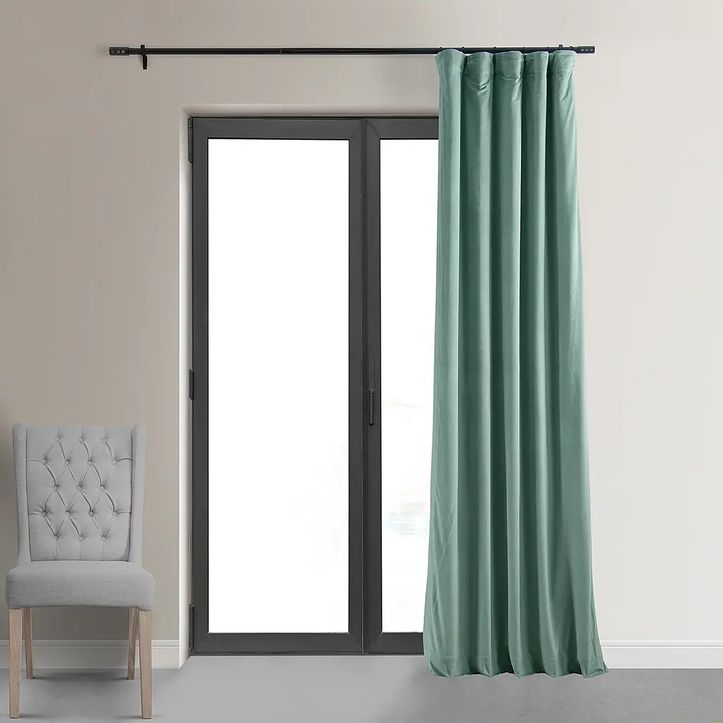 Signature Aqua Mist Blackout Velvet Curtain Single Panel, 50"x84"