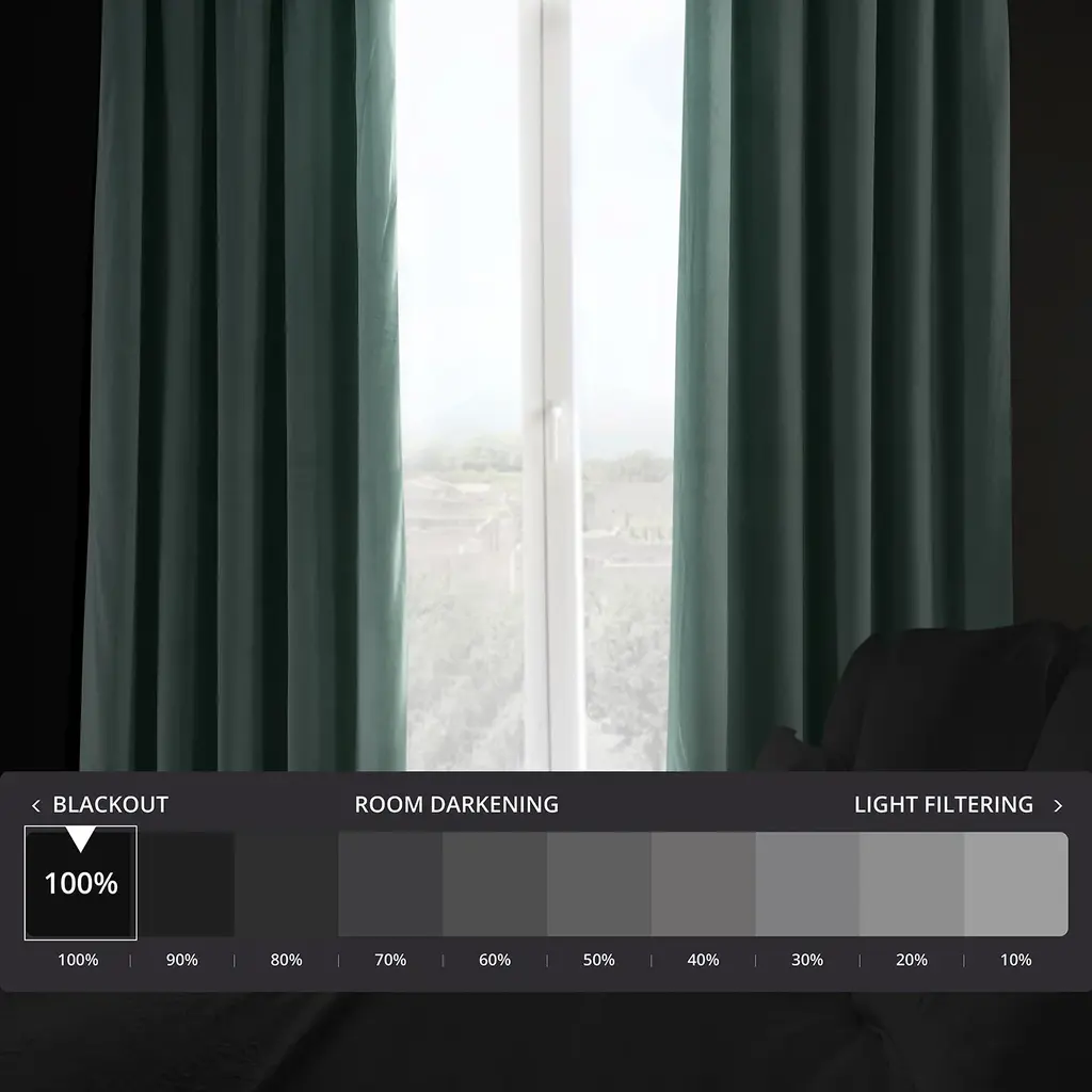 Our soft plush pile Velvet Curtains & Draped have a natural luster with a depth of color that creates a formal, polished look. Made of high-quality, poly velvet and soft flowing polyester blackout thermal lining. The curtains keep the light out and provides for optimal insulation. As a general rule, for proper fullness panels should measure 2-3 times the width of your window/opening.SOLD PER PANELPole Pocket with Hook Belt & Back Tabs100% PolyesterPlush Blackout LiningWeighted HemDry Clean Only