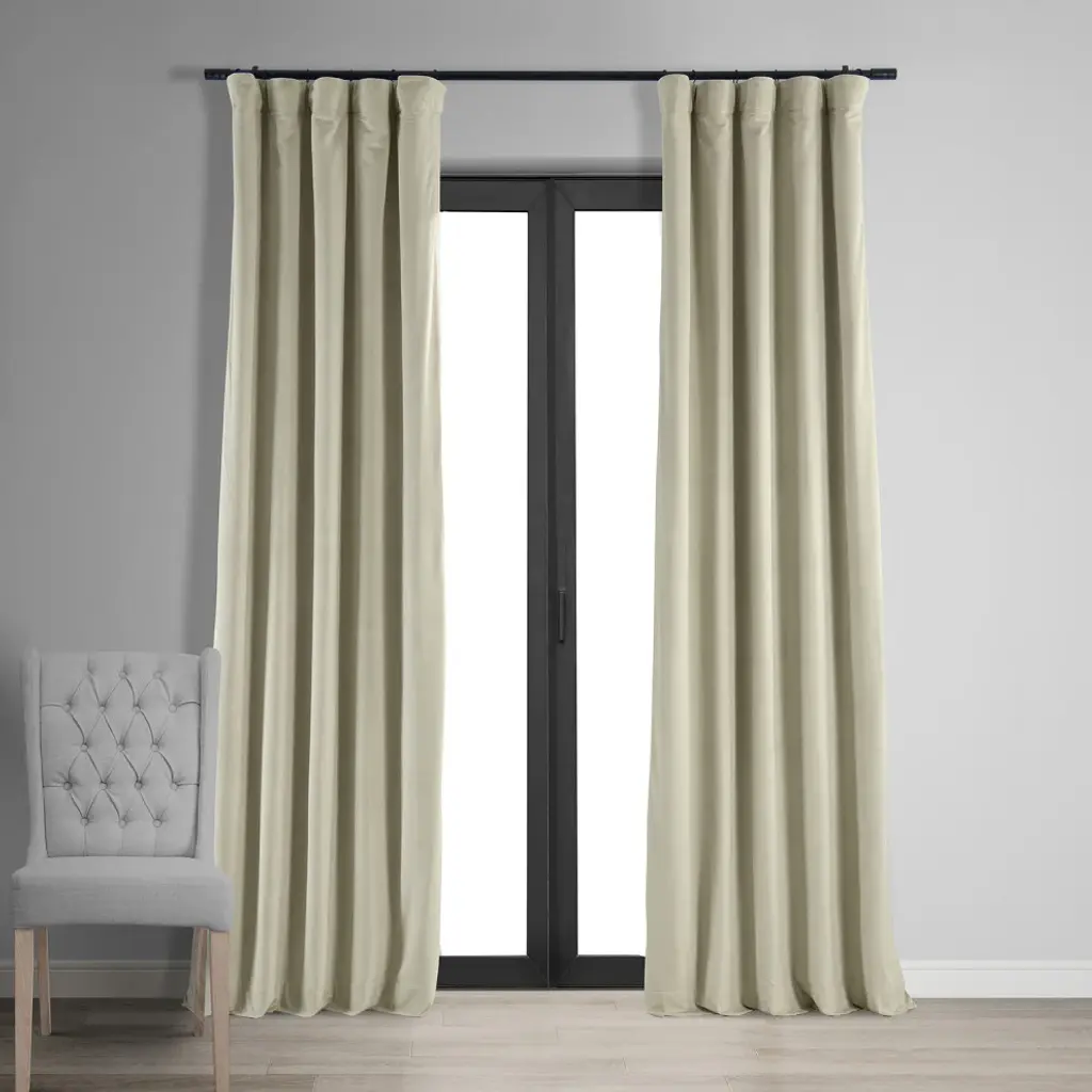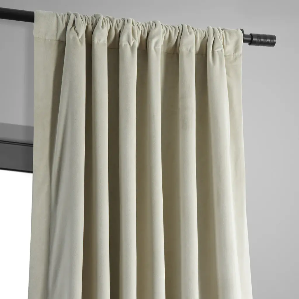 Signature Blackout Velvet Curtain Single Panel, Cool Beige, 50"x120"