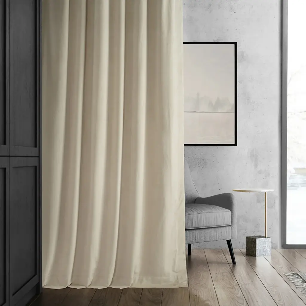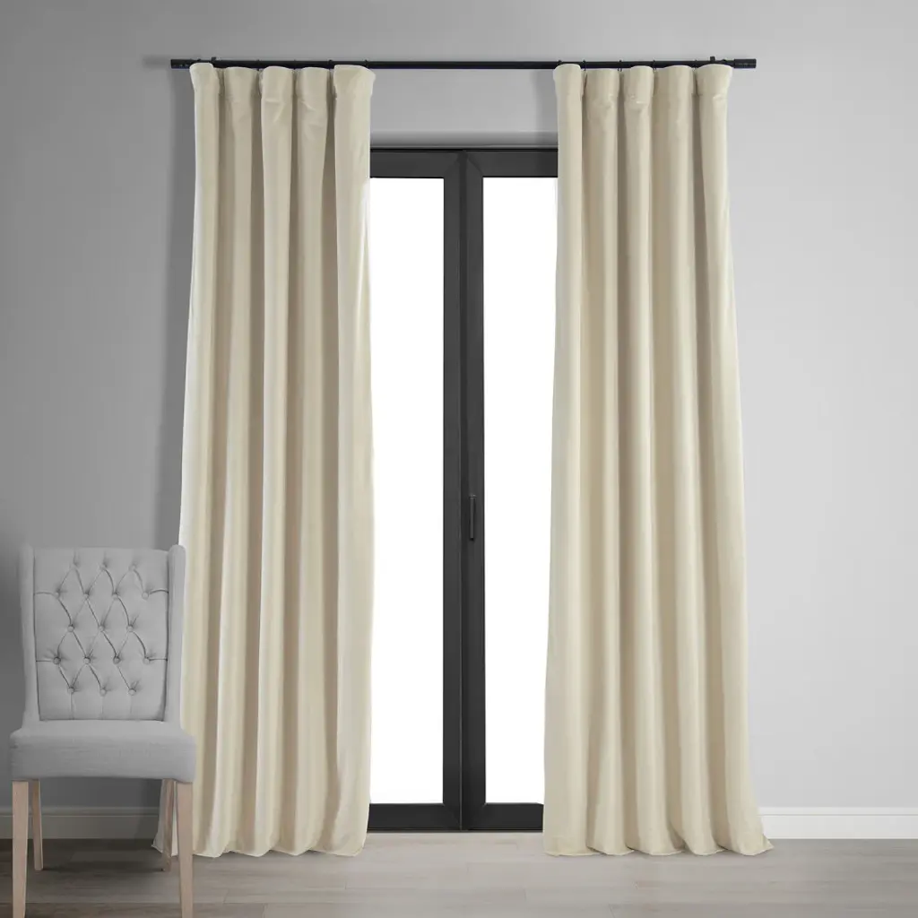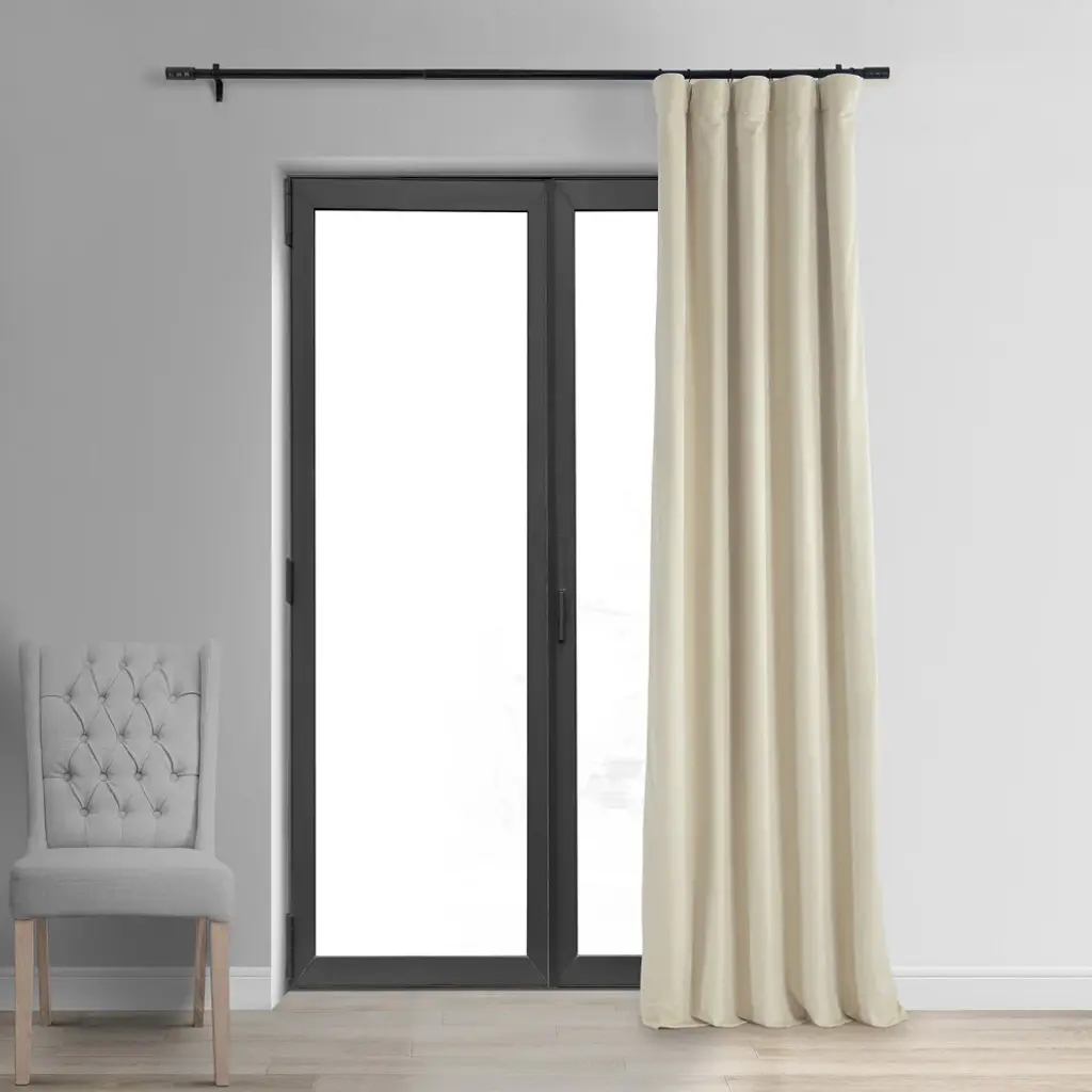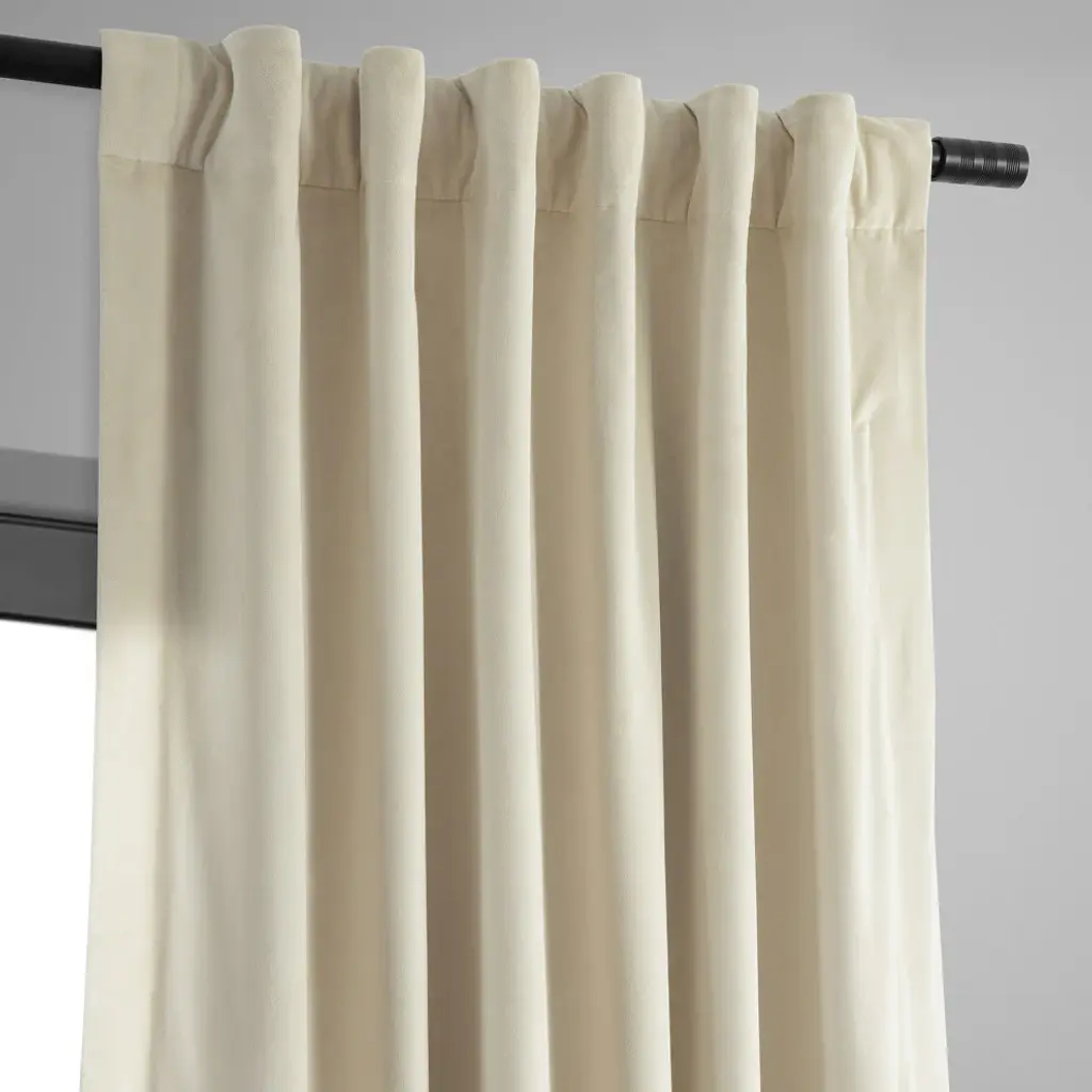 Signature Blackout Velvet Curtain Single Panel, Neutral Ground, 50"x96"