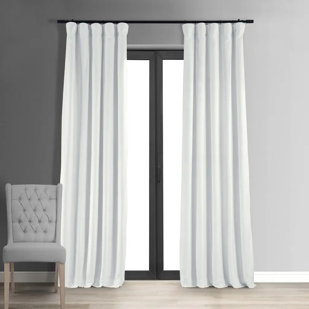 Signature Blackout Velvet Curtain Single Panel, Primary White, 50wx108l