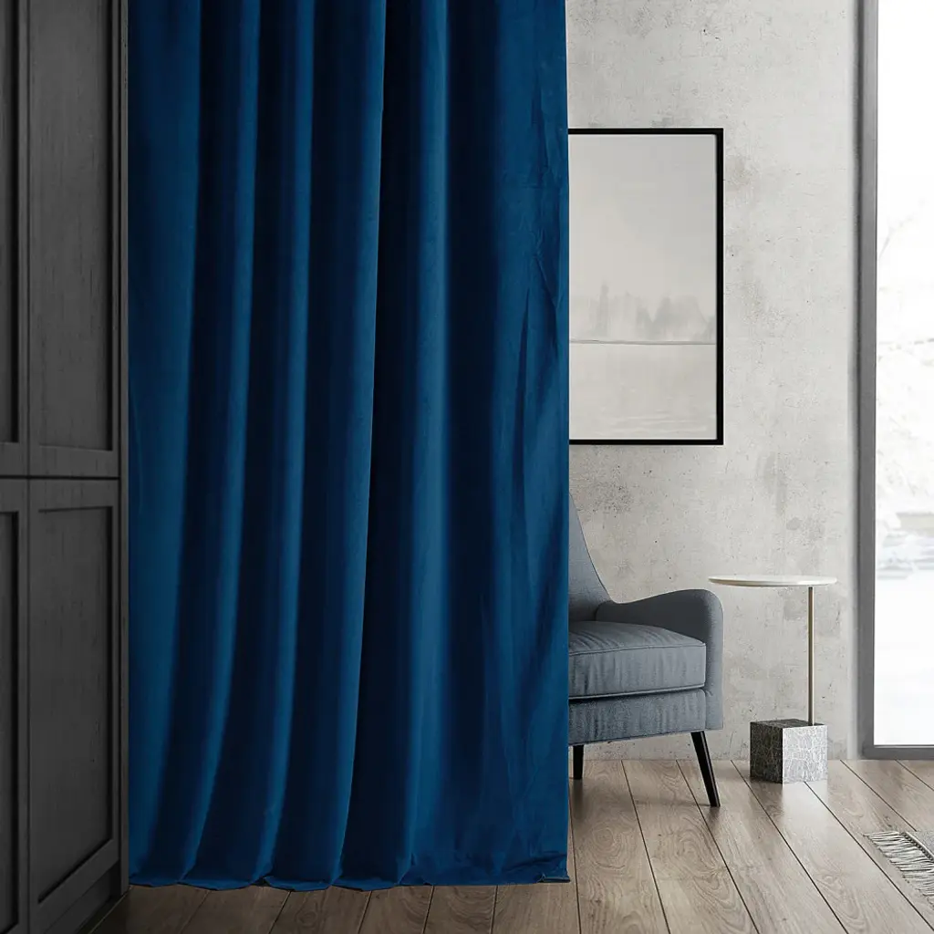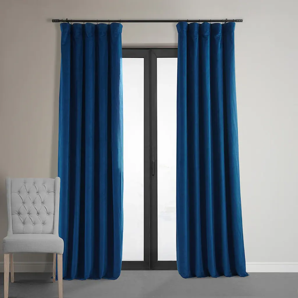 Signature Blackout Velvet Curtain Single Panel, Union Blue, 50"x120"