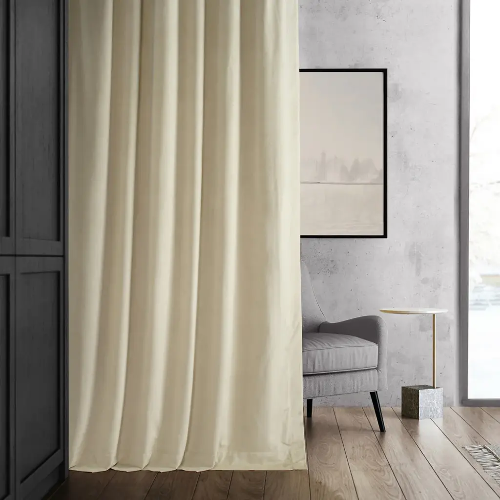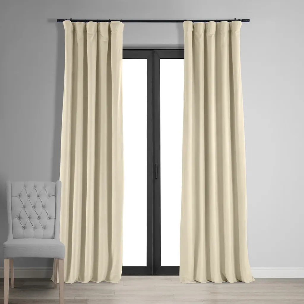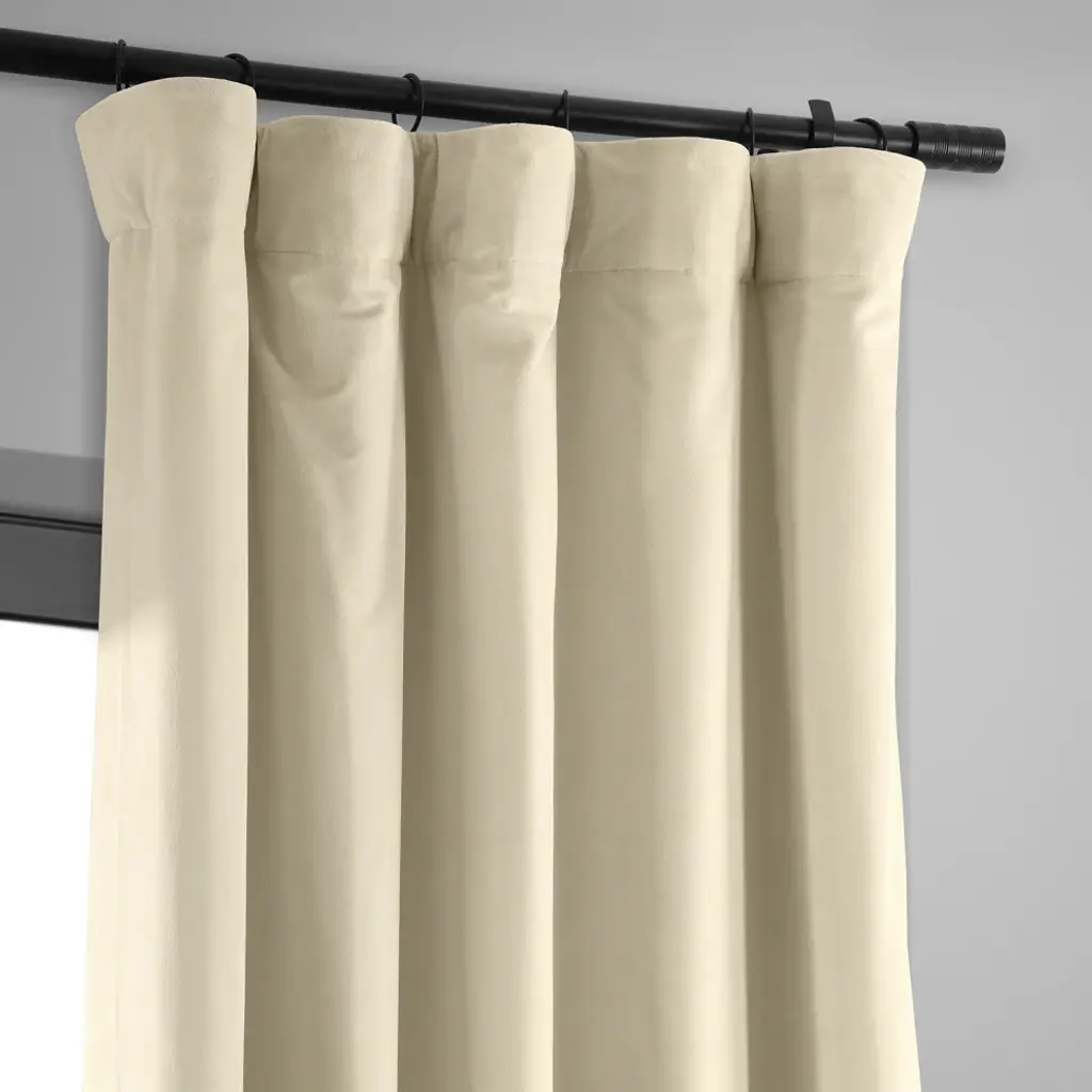 Signature Ecru Blackout Velvet Curtain Single Panel, 50"x120"