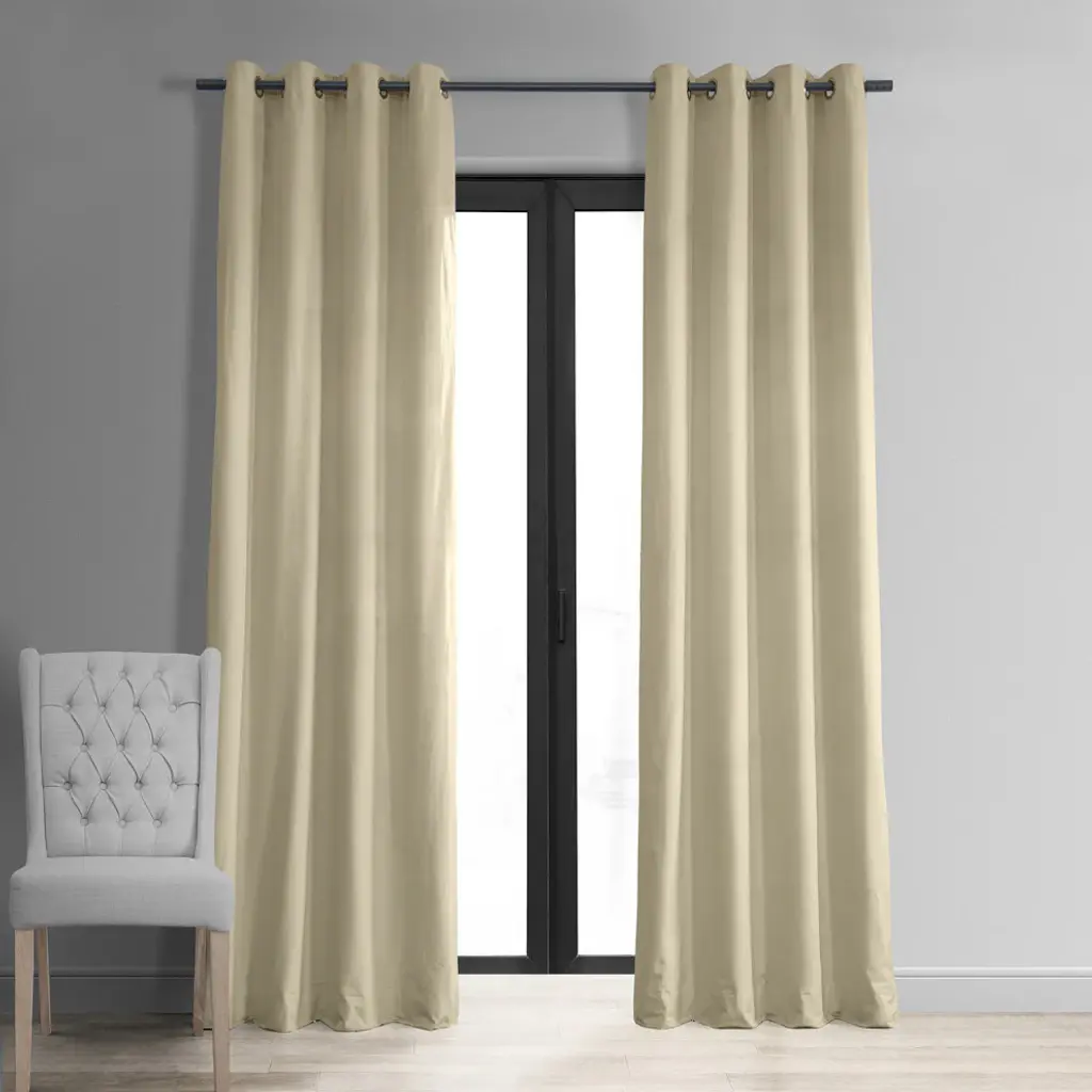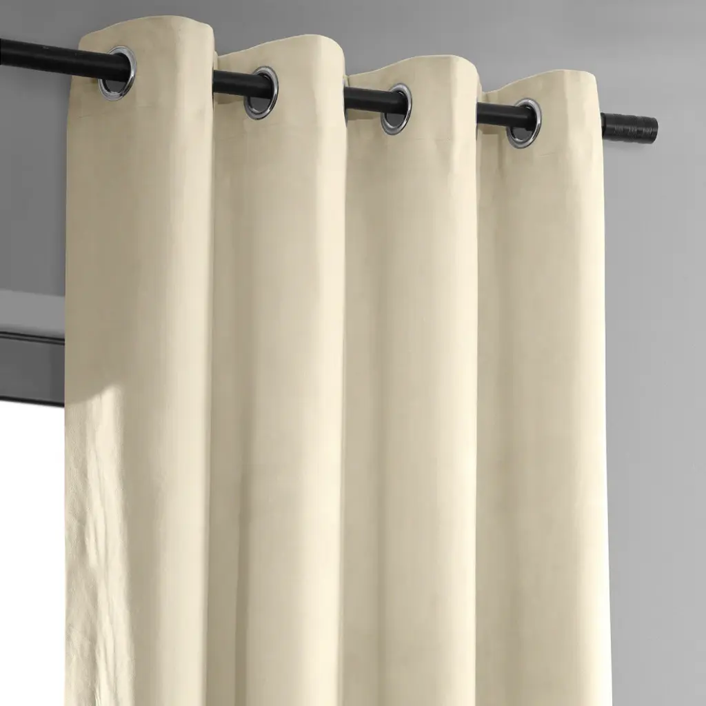 Signature Ecru Grommet Blackout Velvet Curtain Single Panel, 50"x120"