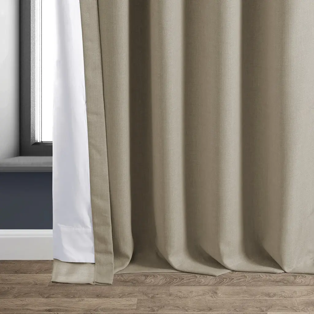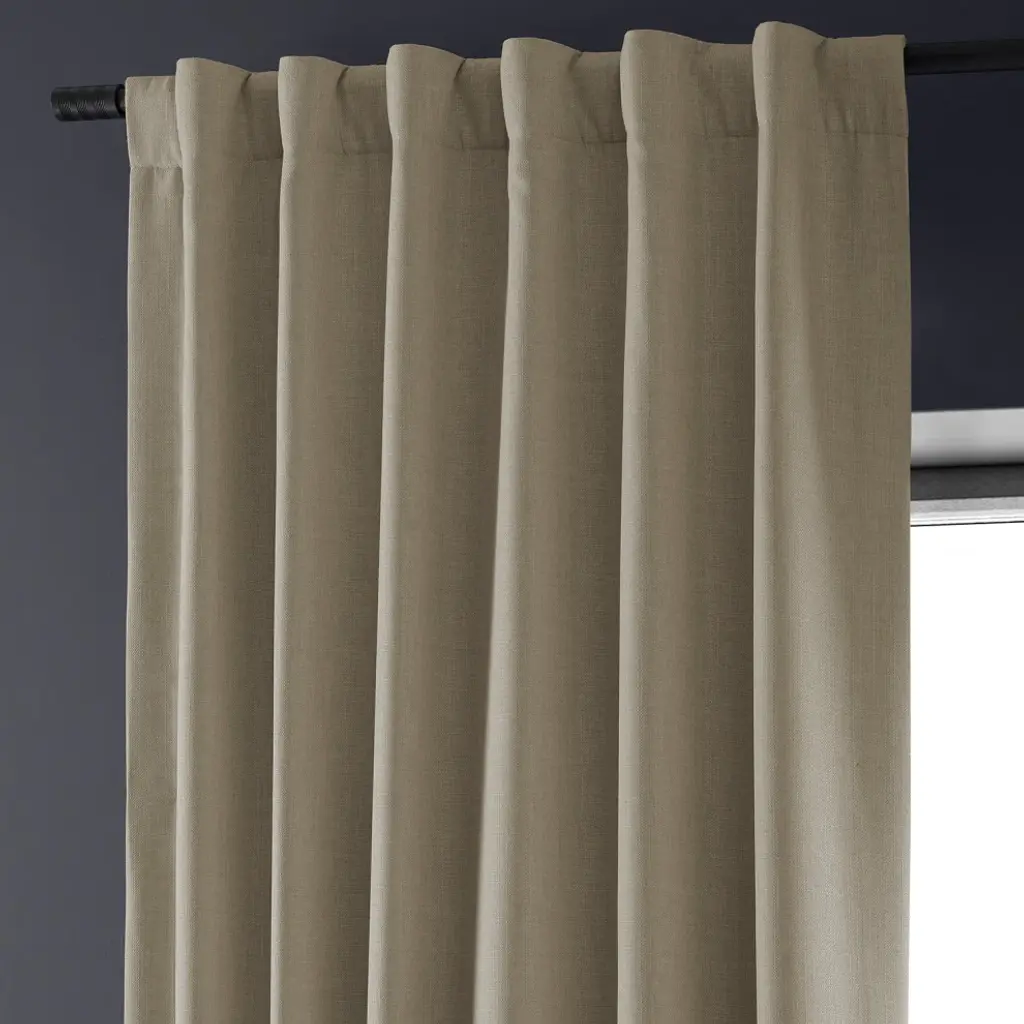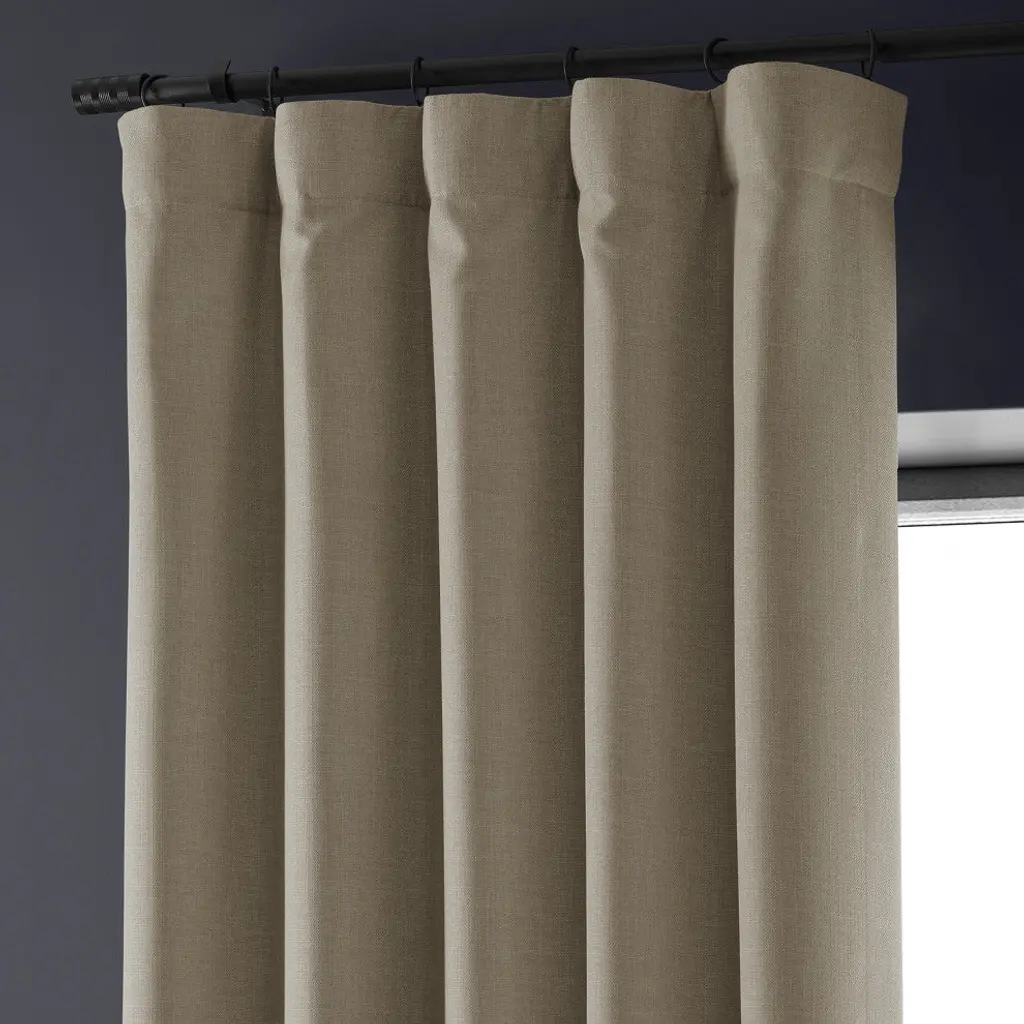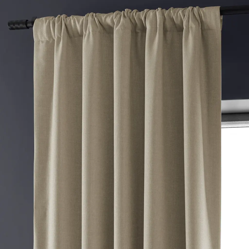 Our Signature Faux Linen Blackout Curtains feature rich woven textures in great modern colors for every decor!. These heavy faux linen panels have significant room darkening properties thanks to their 4 pass process blackout liner that stops light and a weighted hem to hang nicely and keep them in place. These curtains have our most versatile header, a rod pocket with back tabs and hook belt. There is a 3" pole pocket in the header and back tab loops that will accommodate up to a 1.5" diameter curtain rod with no additional hardware. Additionally, these panels can be attached to curtain rings from clips or by running an S-shaped drapery pin through the back of the header and hanging the drapery pin through an eyelet on the rings. These curtains are sold as individual curtain panels with no hardware like rings or hooks. For a pair of curtains, you will need to order a quantity of two. We try to provide the most accurate digital images possible. Color may appear slightly different from one screen to another based on differences in computer monitors, brightness, and other selected settings so there may be variations in color between the actual product and the way it appears online.