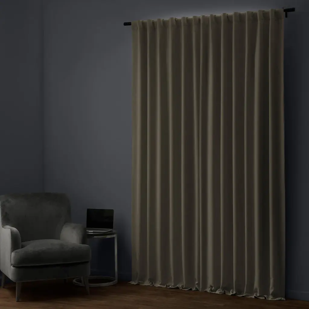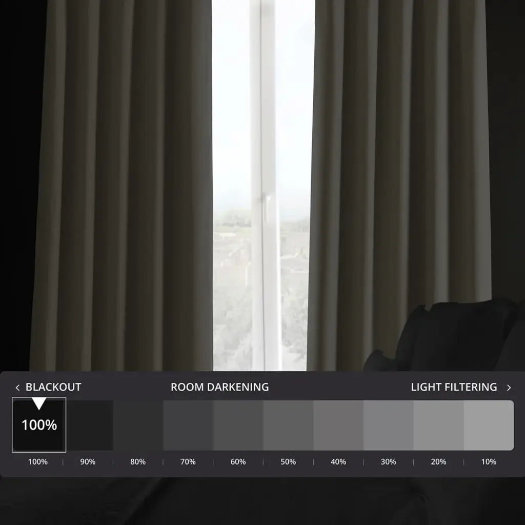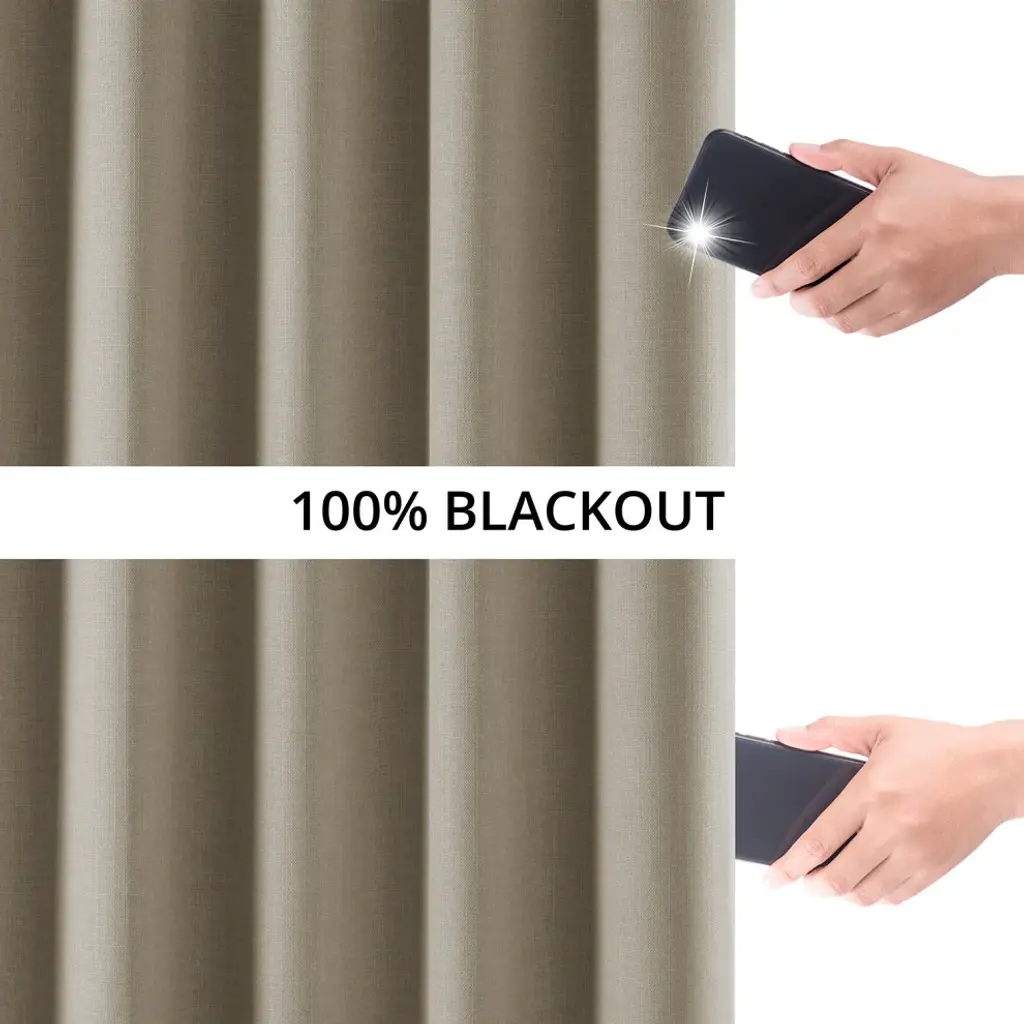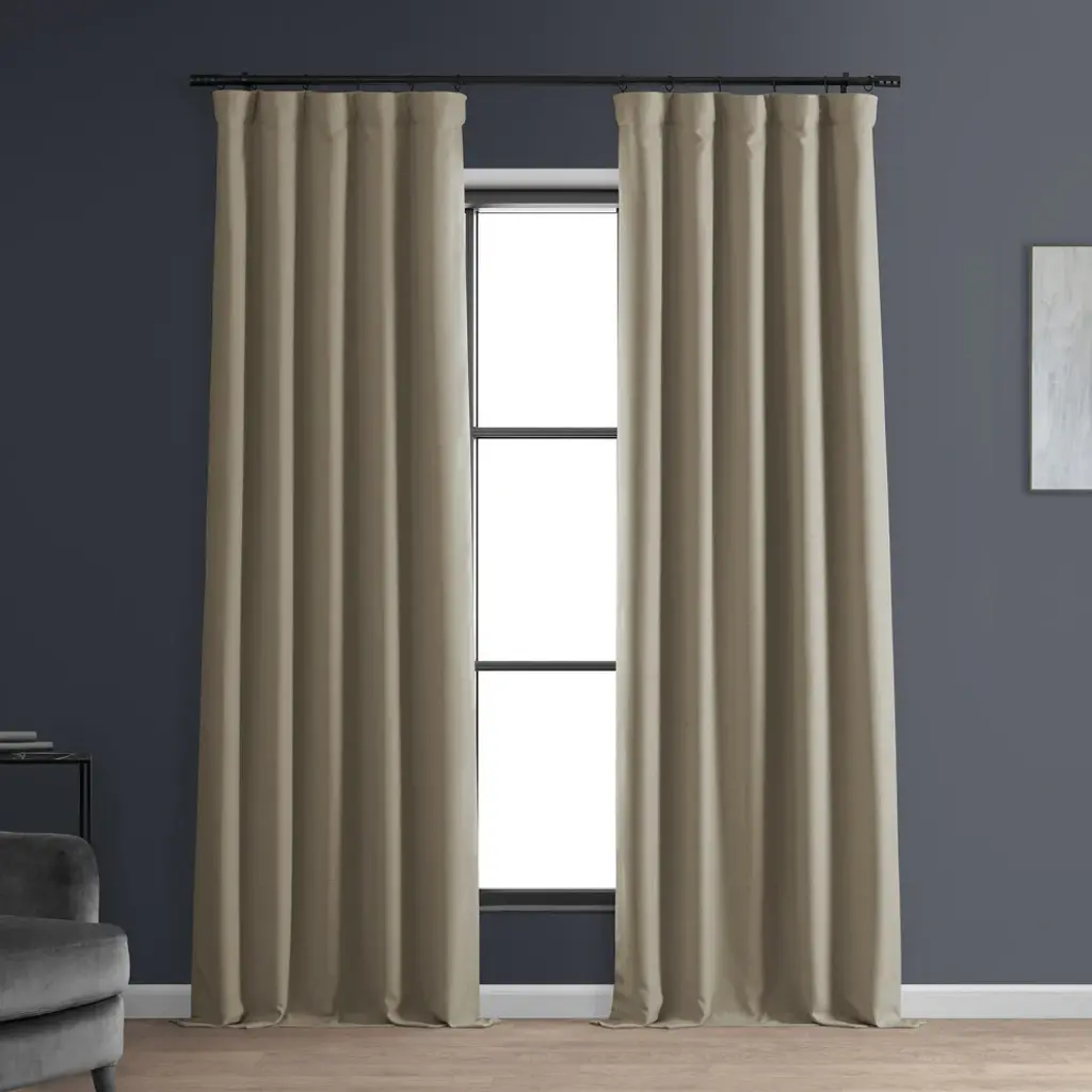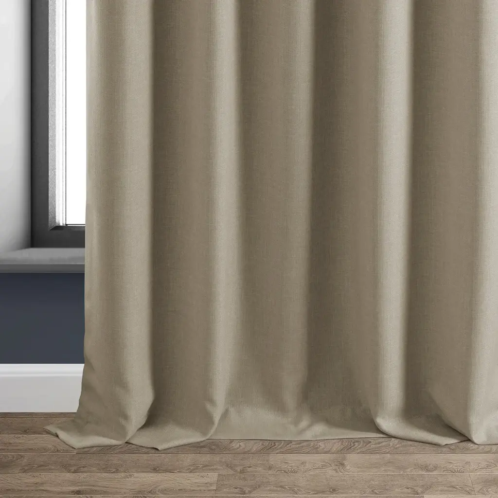 Our Signature Faux Linen Blackout Curtains feature rich woven textures in great modern colors for every decor!. These heavy faux linen panels have significant room darkening properties thanks to their 4 pass process blackout liner that stops light and a weighted hem to hang nicely and keep them in place. These curtains have our most versatile header, a rod pocket with back tabs and hook belt. There is a 3" pole pocket in the header and back tab loops that will accommodate up to a 1.5" diameter curtain rod with no additional hardware. Additionally, these panels can be attached to curtain rings from clips or by running an S-shaped drapery pin through the back of the header and hanging the drapery pin through an eyelet on the rings. These curtains are sold as individual curtain panels with no hardware like rings or hooks. For a pair of curtains, you will need to order a quantity of two. We try to provide the most accurate digital images possible. Color may appear slightly different from one screen to another based on differences in computer monitors, brightness, and other selected settings so there may be variations in color between the actual product and the way it appears online.