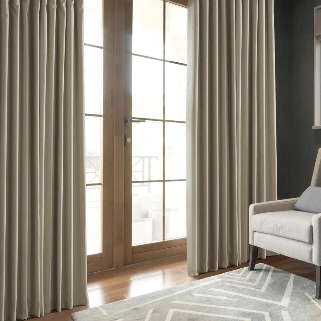 Signature Faux Linen Blackout Curtain Single Panel, Safari Tan, 50"w X 108"l