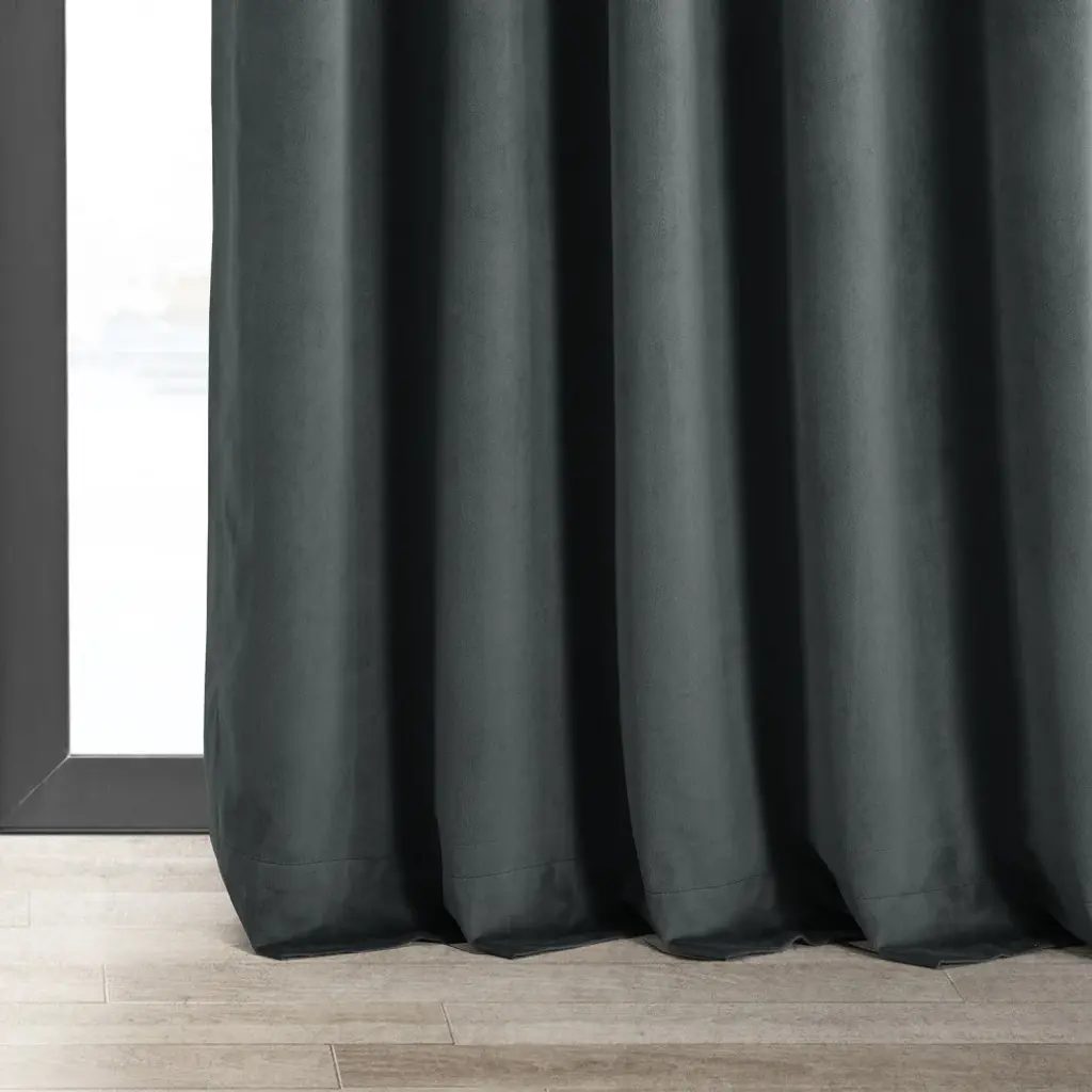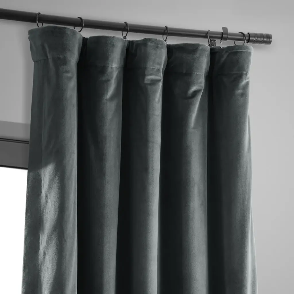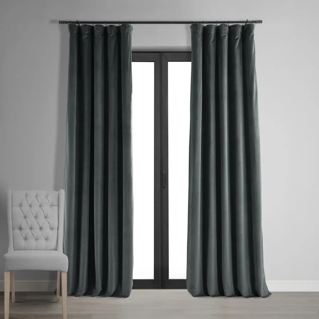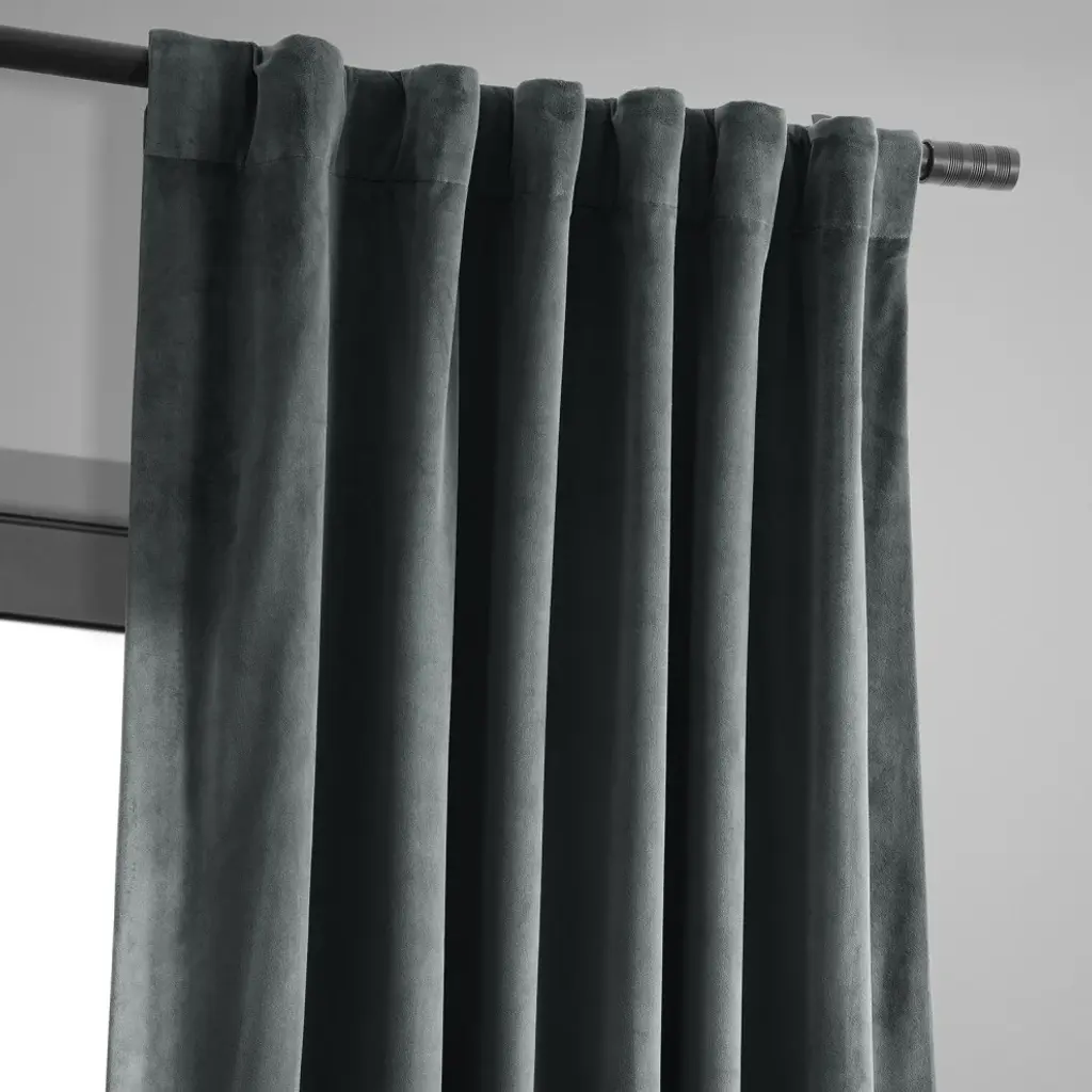 Bring dramatic elegance to your home with the Signature Natural Gray Blackout Curtain. This luxurious velvet curtain comes with a blackout lining to ensure total darkness at night while sleeping. This sleek curtain is well-suited to traditional or transitional-style bedroom and comes in four sizes. Accent your home with understated, luxurious pieces by Exclusive Fabrics & Furnishings, LLC.Single curtain panel with blackout liningDry clean onlyThree-hole pocket with hidden back tab
