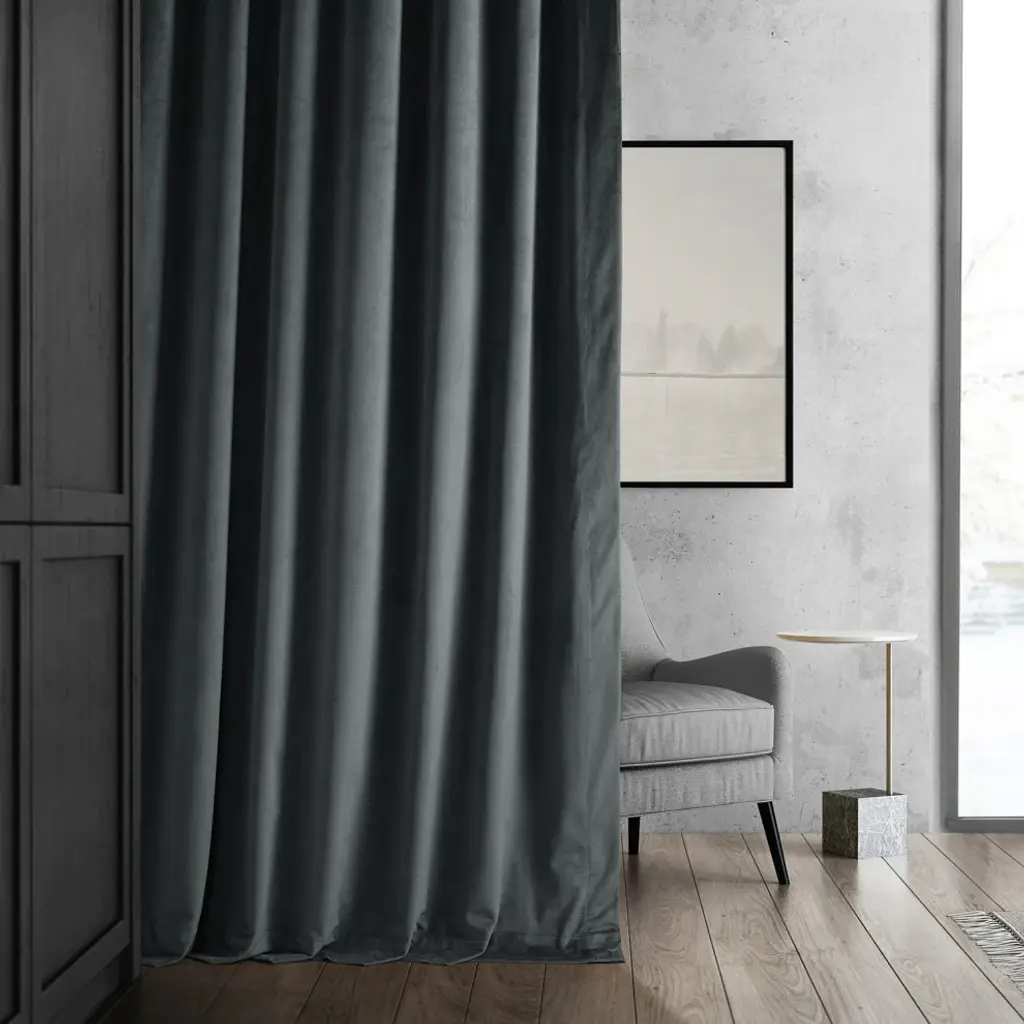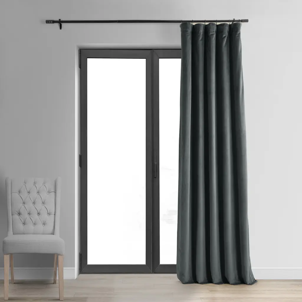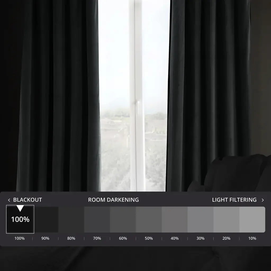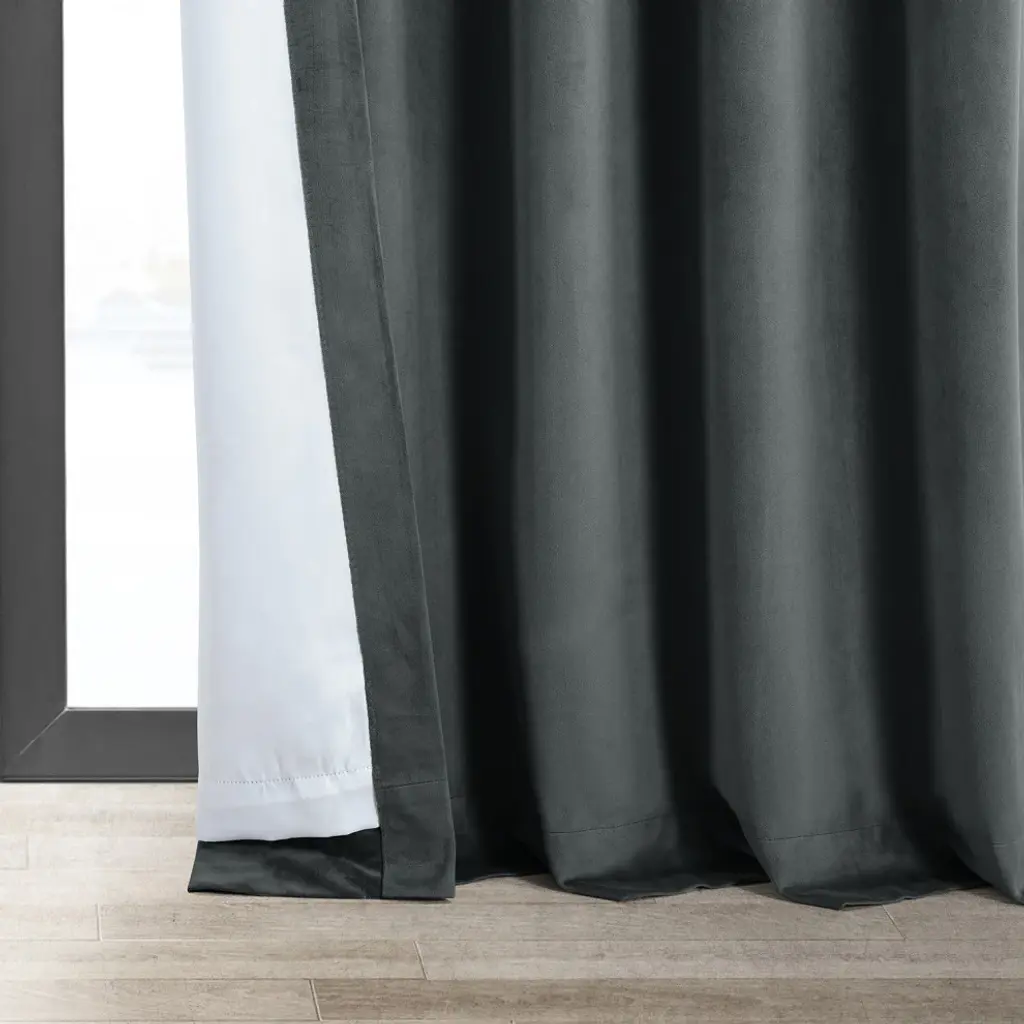 Bring dramatic elegance to your home with the Signature Natural Gray Blackout Curtain. This luxurious velvet curtain comes with a blackout lining to ensure total darkness at night while sleeping. This sleek curtain is well-suited to traditional or transitional-style bedroom and comes in four sizes. Accent your home with understated, luxurious pieces by Exclusive Fabrics & Furnishings, LLC.Single curtain panel with blackout liningDry clean onlyThree-hole pocket with hidden back tab