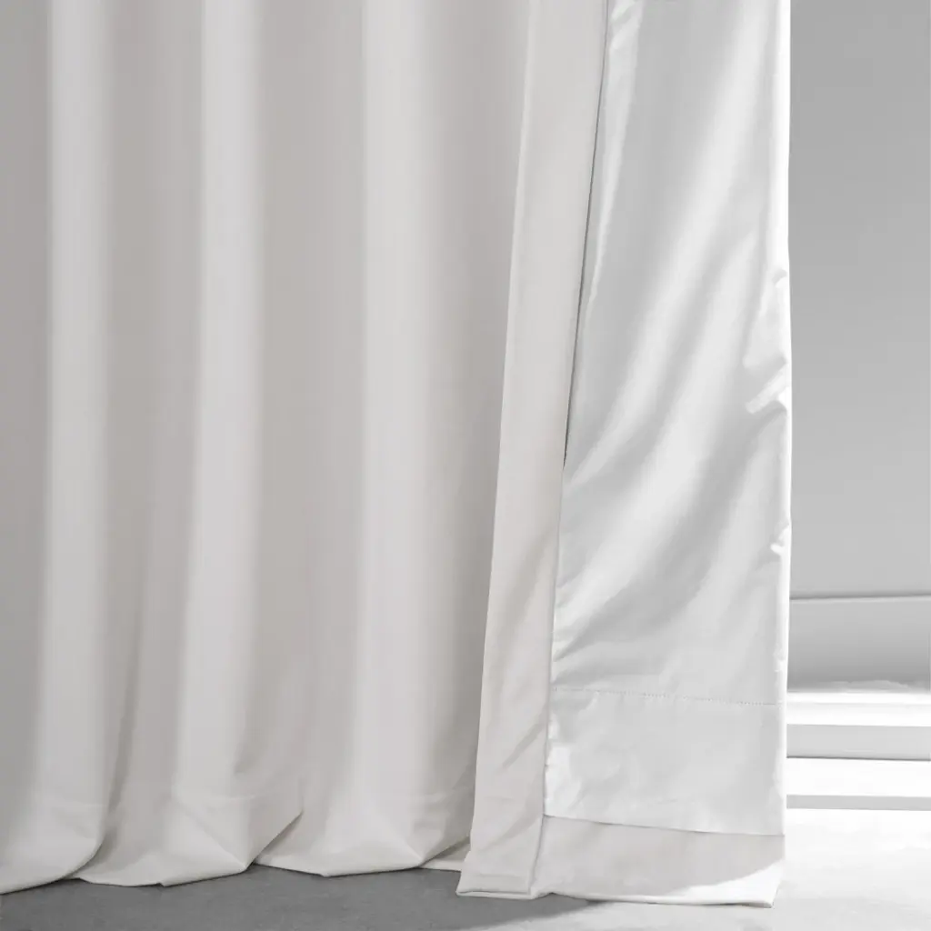 We have the plush, luxury velvet curtains you''re looking for in great modern colors for every decor! These trendy blackout velvet panels have significant room darkening properties thanks to their 4 pass process blackout liner that stops light and a weighted hem to hang nicely and keep them in place. These curtains have our most versatile header, a rod pocket with back tabs and hook belt. There is a 3" pole pocket in the header and back tab loops that will accommodate up to a 1.5" diameter curtain rod with no additional hardware. Additionally, these panels can be attached to curtain rings from clips or by running an S-shaped drapery pin through the back of the header and hanging the drapery pin through an eyelet on the rings. These curtains are sold as individual curtain panels with no hardware like rings or hooks. For a pair of curtains, you will need to order a quantity of two. We try to provide the most accurate digital images possible. Color may appear slightly different from one screen to another based on differences in computer monitors, brightness, and other selected settings so there may be variations in color between the actual product and the way it appears online.