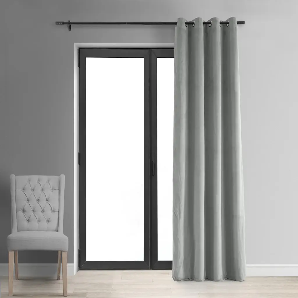 Signature Silver Gray Grommet Blackout Velvet Curtain Single Panel, 50"x108"