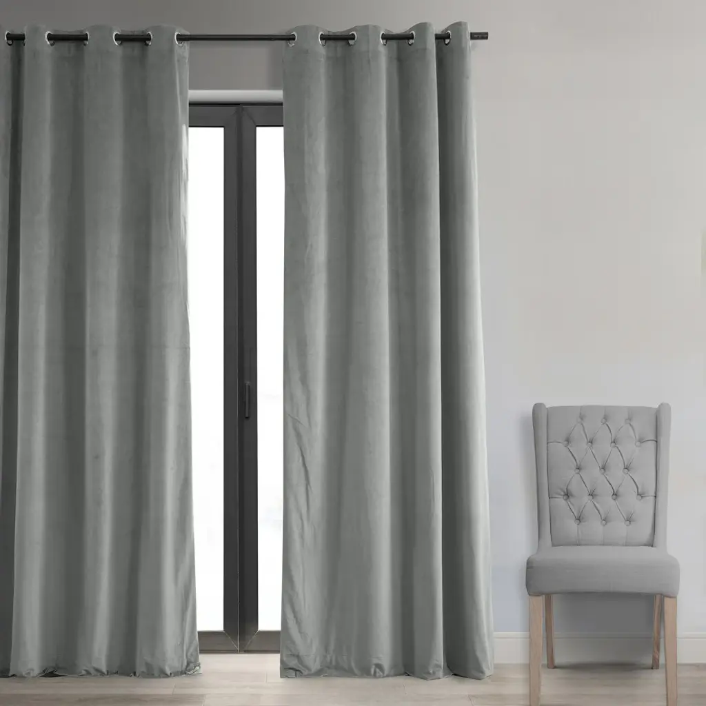 Our soft plush pile Velvet Curtains & Draped have a natural luster with a depth of color that creates a formal, polished look. Made of high-quality, poly velvet and soft flowing polyester blackout thermal lining. The curtains keep the light out and provides for optimal insulation. As a general rule, for proper fullness panels should measure 2-3 times the width of your window/opening.SOLD PER PANELFinished With Nickel Finish Grommets100% PolyesterPlush Blackout LiningWeighted HemDry Clean Only