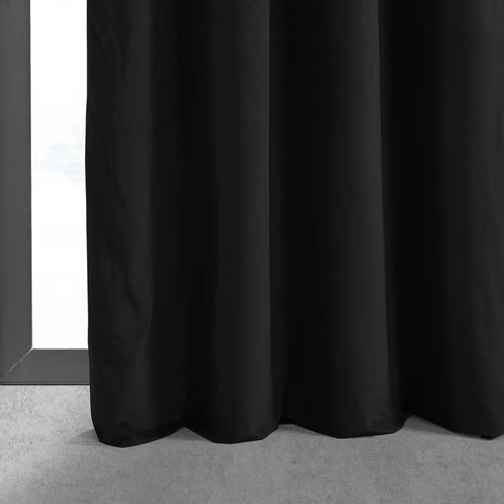 Our soft plush pile Velvet Curtains & Draped have a natural luster with a depth of color that creates a formal, polished look. Made of high-quality, poly velvet and soft flowing polyester blackout thermal lining. The curtains keep the light out and provides for optimal insulation. As a general rule, for proper fullness panels should measure 2-3 times the width of your window/opening.SOLD PER PANELFinished With Nickel Finish Grommets100% PolyesterPlush Blackout LiningWeighted HemDry Clean Only