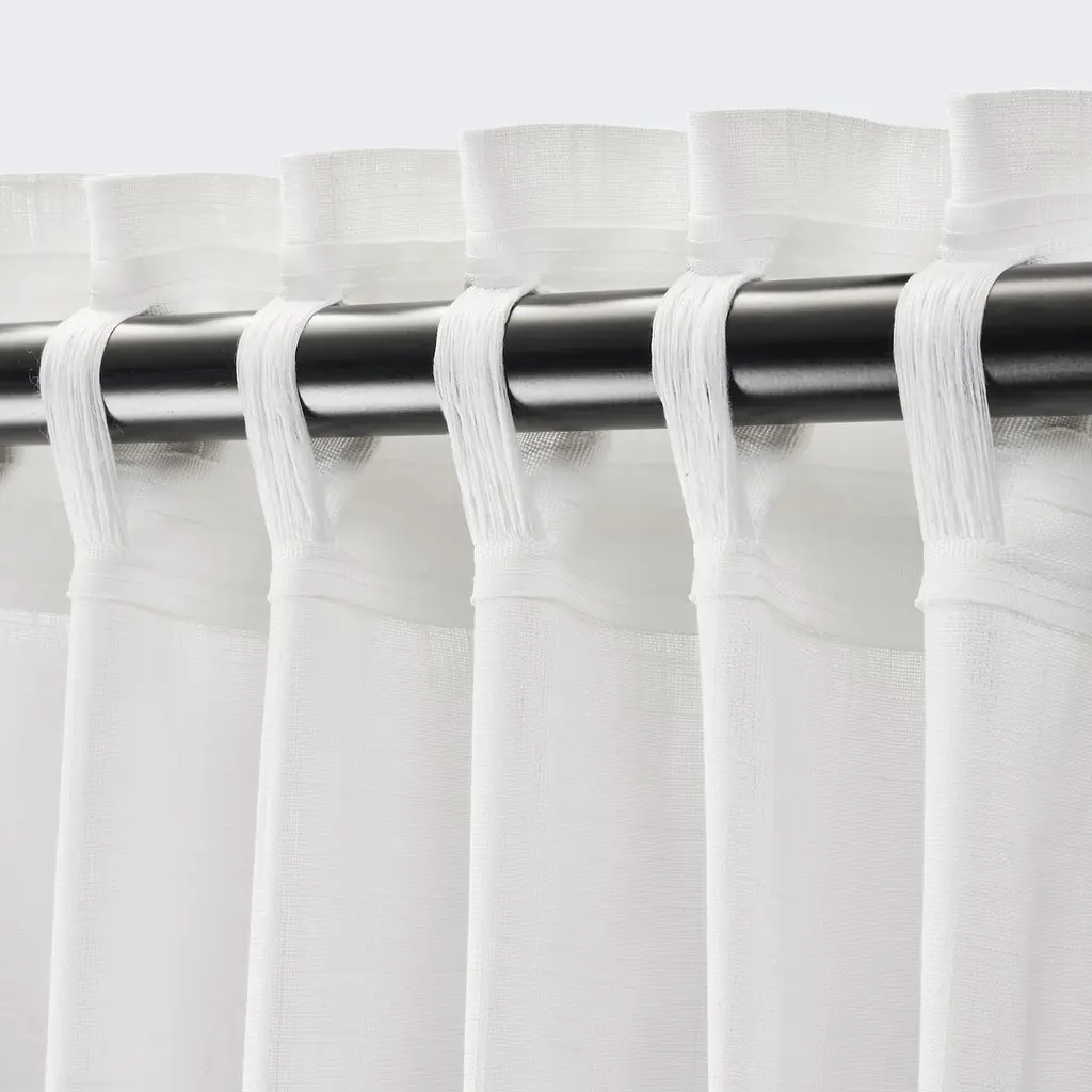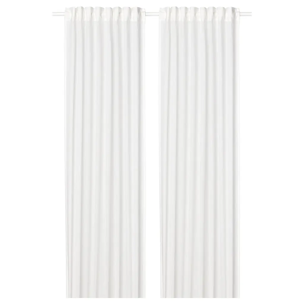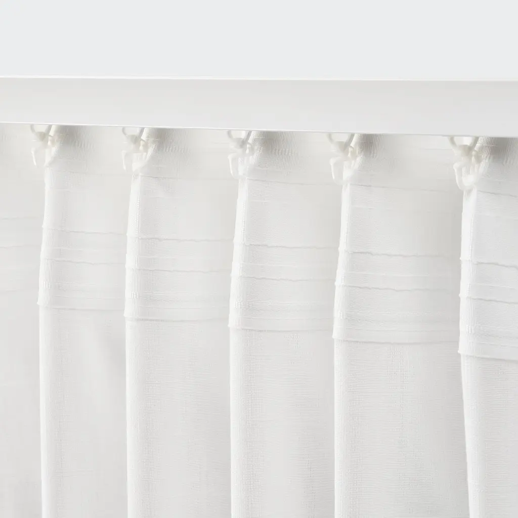 SILVERLÖNN Sheer curtains, 1 pair - white 57x98 ". The sheer curtains let the daylight through but provide privacy so they are perfect to use in a layered window solution. Using gliders and hooks usually creates a more formal and dressed-up feel, where hardware is not visible.