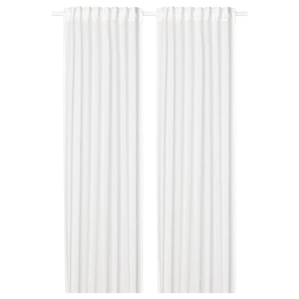 SILVERLÖNN Sheer curtains, 1 pair - with heading tape/white 57x98 ". The sheer curtains let the daylight through but provide privacy so they are perfect to use in a layered window solution. Cotton is a soft, durable and easy-care natural material that you can machine wash. Curtains, 1 pair included