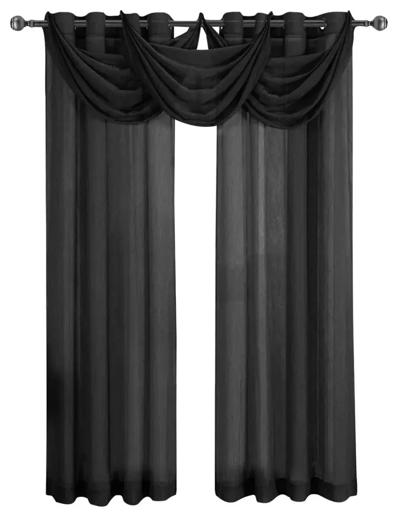 Add more elegance with one or more waterfall valances, use them to dress up a traditional or formal living room or a picture window in your master bedroom. Add the valance scarf to complete the look. Solid valances easily fits into any home decor''s color scheme. Amazingly versatile, these crushed sheer window valances are available in 12 colors. Machine-washable.•100% polyester•Sold as single valance (each set contains only one valance•Allows light to softly enter the room•Crushed sheer creates fresh & rich atmosphere•Machine-washableAvailable Sizes Include: 24" wide x 24" long each