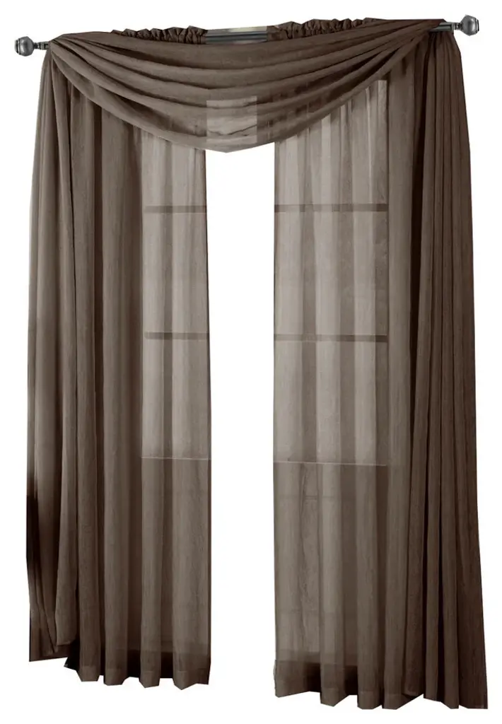 Add more elegance with one or more waterfall valances, use them to dress up a traditional or formal living room or a picture window in your master bedroom. Add the valance scarf to complete the look. Solid valances easily fits into any home decor''s color scheme. Amazingly versatile, these crushed sheer window valances are available in 12 colors. Machine-washable.•100% polyester•Sold as single valance (each set contains only one valance•Allows light to softly enter the room•Crushed sheer creates fresh & rich atmosphere•Machine-washableAvailable Sizes Include: 24" wide x 24" long each