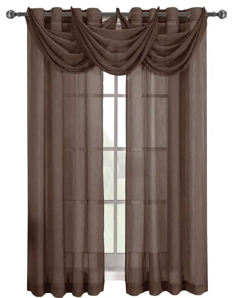 Single Abri Grommet Sheer Window Valance, Chocolate