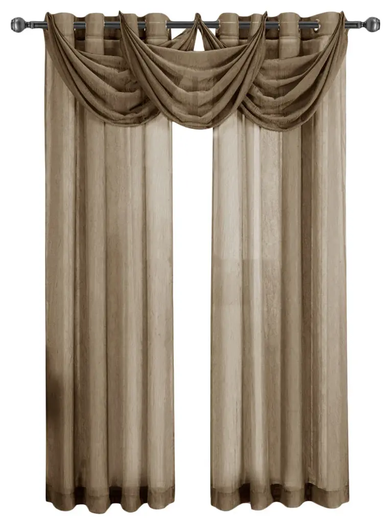 Add more elegance with one or more waterfall valances, use them to dress up a traditional or formal living room or a picture window in your master bedroom. Add the valance scarf to complete the look. Solid valances easily fits into any home decor''s color scheme. Amazingly versatile, these crushed sheer window valances are available in 12 colors. Machine-washable.•100% polyester•Sold as single valance (each set contains only one valance•Allows light to softly enter the room•Crushed sheer creates fresh & rich atmosphere•Machine-washableAvailable Sizes Include: 24" wide x 24" long each