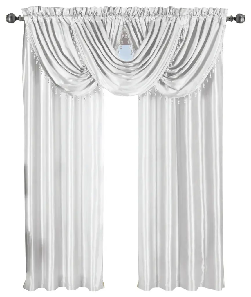 Soho Faux Silk Waterfall Window Treatment (Single)Enhance your privacy while embellishing your living space with this Soho faux silk waterfall curtain panel.features a texture-rich and colorful panels that adds an elegant touch to any room decorations. This waterfall curtain panels provides a quality, durability and style. With a soft faux-polyester, this panel provides effortless draping and versatility to your window. 100-Percent Polyester Waterfall Curtain Panels Royal Tradition Collection Easy Hanging Panels are sold individually Machine-Washable Easy Care, Check Care Instructions!Available Sizes Includes: 42" wide x 63" long 42" wide x 84" long 42" wide x 96" long 42" wide x 108" long Care InstructionsThis soho faux silk waterfall curtain panels are machine washable with same colors for easy care. However, Waterfall Valances Should Be Dry-Cleaned Only