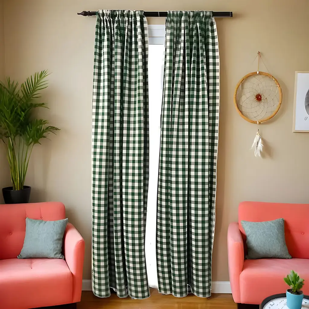 Slickblue Checkered Backdrop Curtains – 2 Panels, 58"x96", White And Hunter Green