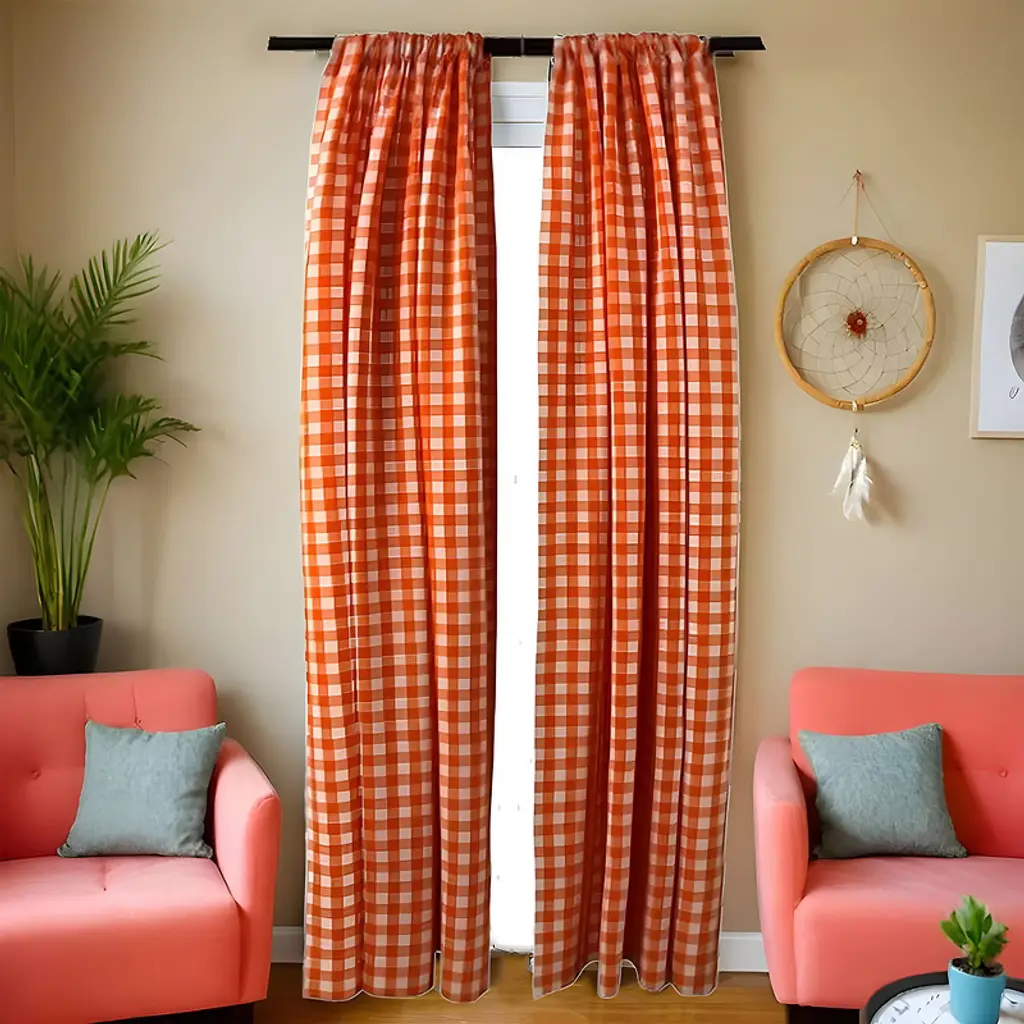 Slickblue Checkered Backdrop Curtains – 2 Panels, 58"x96", White And Orange