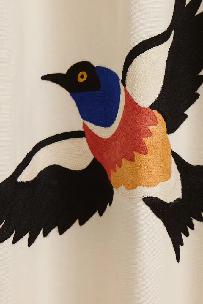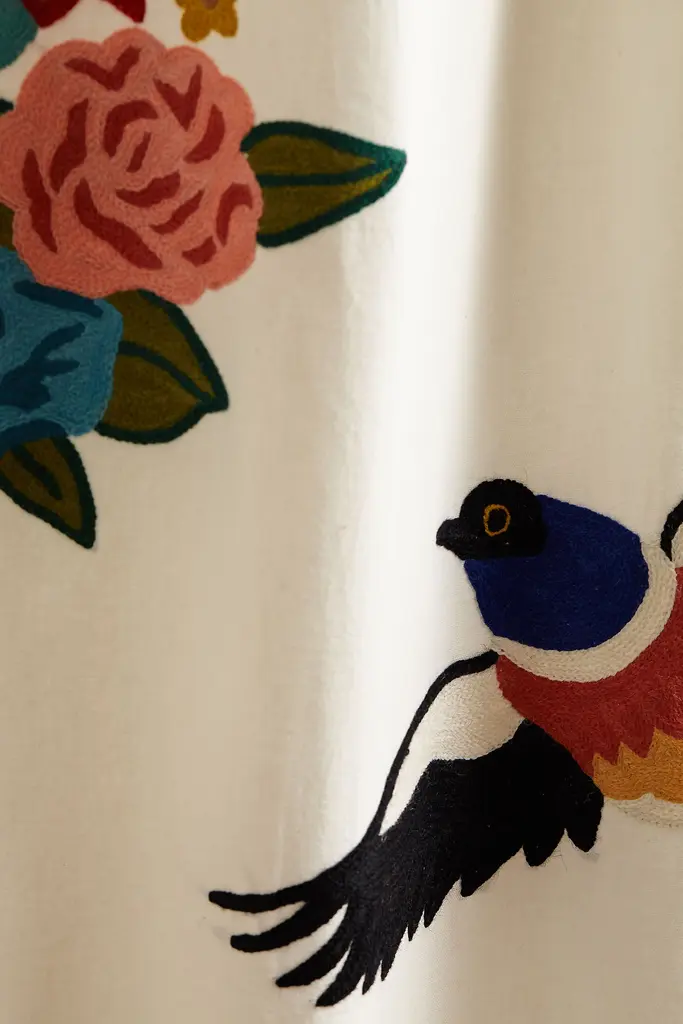 About Rebecca ReboucheRebecca Rebouche creates nostalgic, emotive and whimsical art out of paint, mixed media and stitched soft sculpture. The Louisiana native got her start on the road showing her paintings at art festivals around the country. Today, she continues to be inspired by the romance of the South, namely the flora and fauna that surround her rural studio. Here, she translates her aesthetic onto a crewelwork curtain.